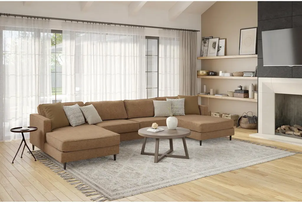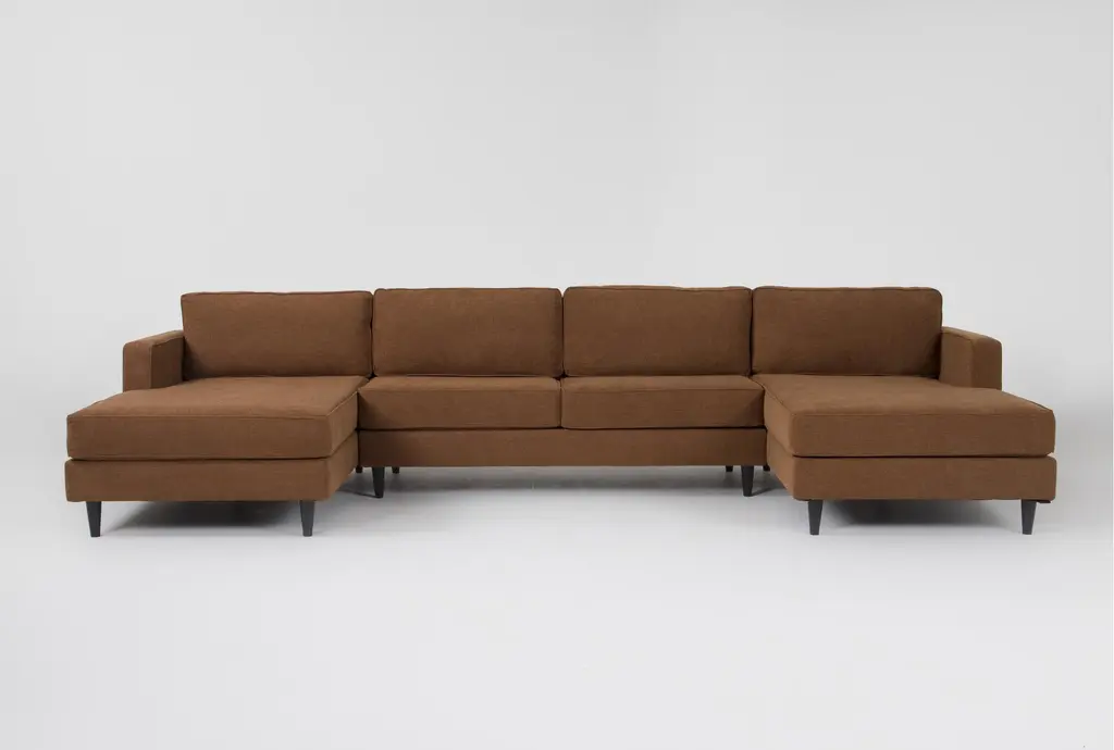 The Calais III Rust 147" Double Chaise Lounge with Armless Loveseat is a perfect addition to any modern living room. Its rust color and sleek design make it a standout piece that will enhance your space. The 100% polyester fabric ensures durability and comfort for everyday use.