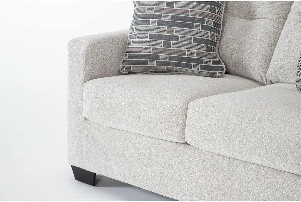 Your lounging prayers will be answered with our comfy and stylish Callahan collection. Available at a tremendous value, these designs are an easy, breezy addition to your living room that inspire instant relaxation. We offer each piece in two colors, so you can choose the perfect hue for your space. Sturdy track arm frames are corner-blocked for strength and a platform foundation system provides even, reliable support. With attached back cushions and loose seat cushions, you get a perfectly balanced experience.