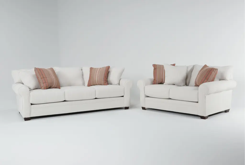 What could be more inviting than our Cameron living room set's totally comfortable, effortlessly casual design? From the cozy upholstery, to the deep seating, to the accent pillows and graceful roll arms, there are so many details that make each piece irresistible. Through our Special Order program, you can customize the fabrics at no extra cost.