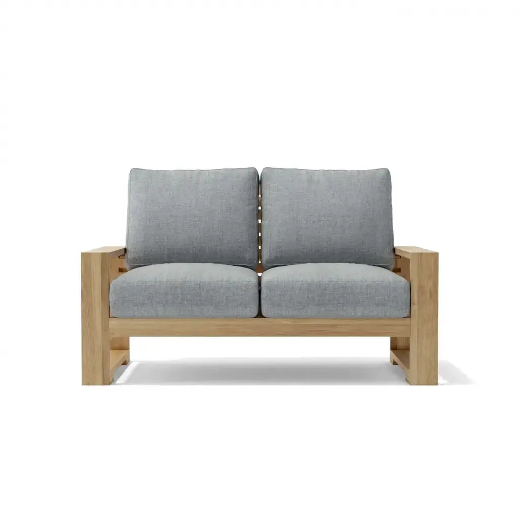 The Capistrano Deep Seating Loveseat comfortably sits two and is the perfection addition for your backyard or inside your home. With its spaciously modern, elegant, and comfortable teak design, you can be sure to entertain guests, family, and friends over a good time. Add other pieces from the collection such as ottomans, coffee tables, or mix and match with the Capistrano Armchair, Capistrano Sofa, and the Capistrano Side Table. Arrives with Sunbrella Cushions 6" thick made to last outdoors without mildew and minimal discoloration, it arrives knocked down with easy assembly. Back support easily adjustable to four positions. Please consult with your Sales Representative for cushion color choice.