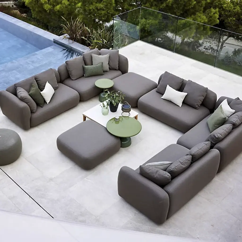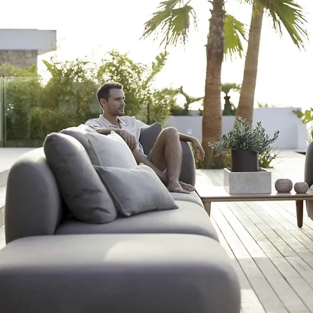 The Capture Outdoor 2-Seater Sofa Module from Cane-line is a cozy seating solution. It boasts room for 2 to sit together outside. Capture is composed of Cane-line AirTouch fabric. It is weather-resistant and is filled with Quickdry foam for easy maintenance. A frame of sturdy aluminum adds durability and support without compromising comfort. Its subtly rounded profile gives it a contemporary look for versatility. Use it solo or as part of a larger arrangement.