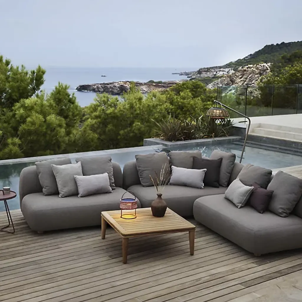 The Capture Outdoor 2-Seater Sofa Module from Cane-line is a cozy seating solution. It boasts room for 2 to sit together outside. Capture is composed of Cane-line AirTouch fabric. It is weather-resistant and is filled with Quickdry foam for easy maintenance. A frame of sturdy aluminum adds durability and support without compromising comfort. Its subtly rounded profile gives it a contemporary look for versatility. Use it solo or as part of a larger arrangement.