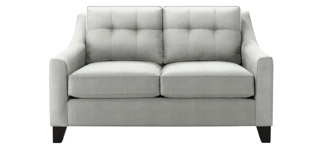 With so many great characteristics, the Carmine loveseat is your best choice for a classy yet chic living room. Biscuit-tufting on the seat backs, track arms, matching piping and tapered legs make this loveseat a must-have. Plus, we adore the patterned accent pillows that add an extra visual element.