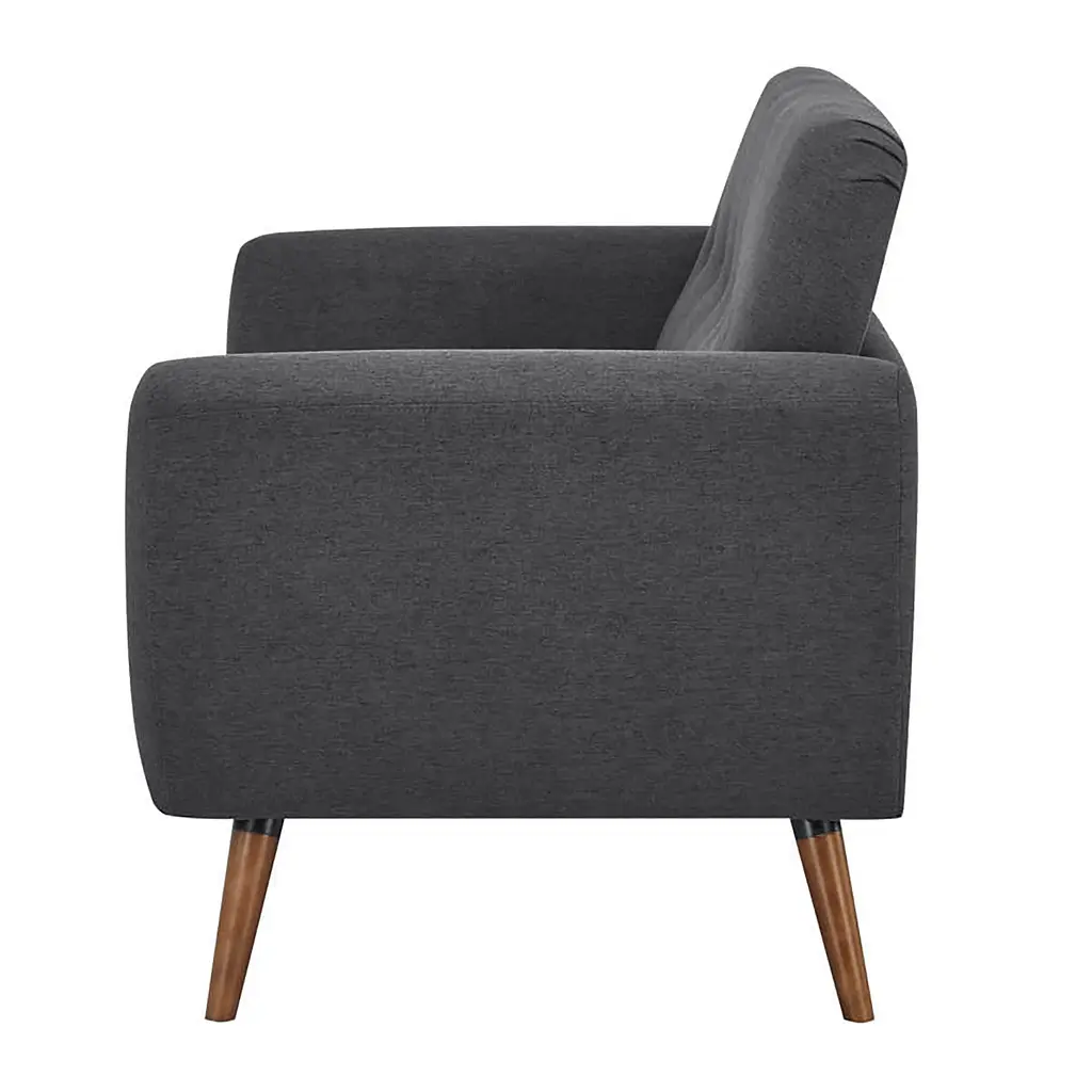 Add a touch of mid-century modern style to your living space with the Maglo upholstered loveseat from Carson Carrington. Enjoy the comfortable and supportive foam cushioning and the convenient foldable button tufted backrest. This loveseat is made with a naturally durable pine wood frame and upholstered in 100% polyester or 100% velvet polyester fabric, available in a variety of attractive colors. Assembly is a breeze with the included solid birch wood legs, and all hardware is included. At 58 inches wide, this loveseat is perfect for sharing with someone special.Features:Color Options:Dimensions: