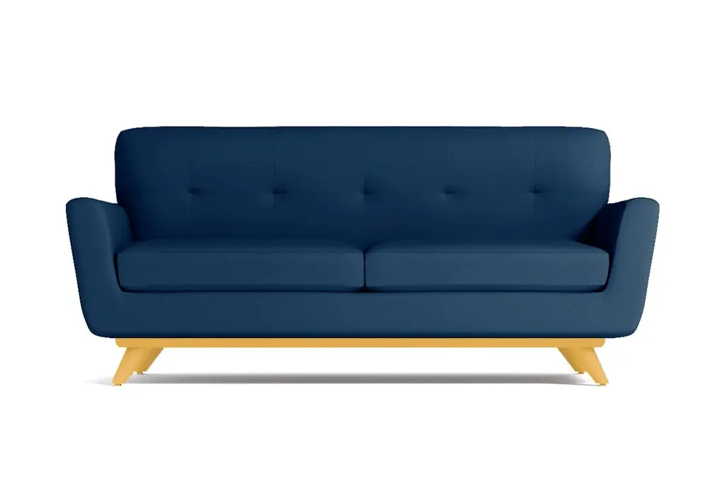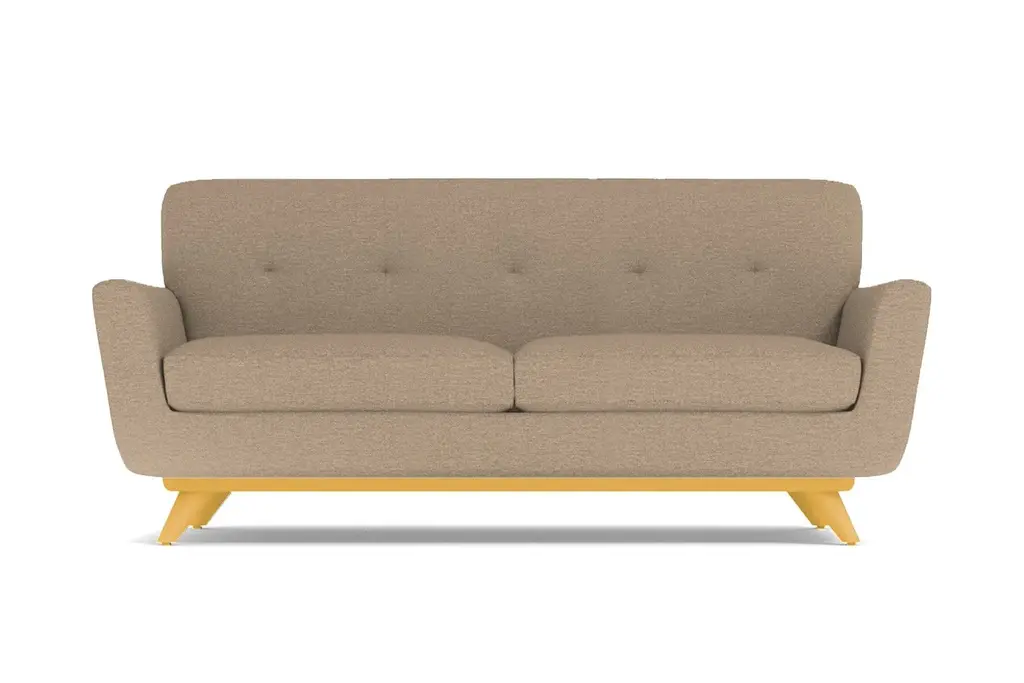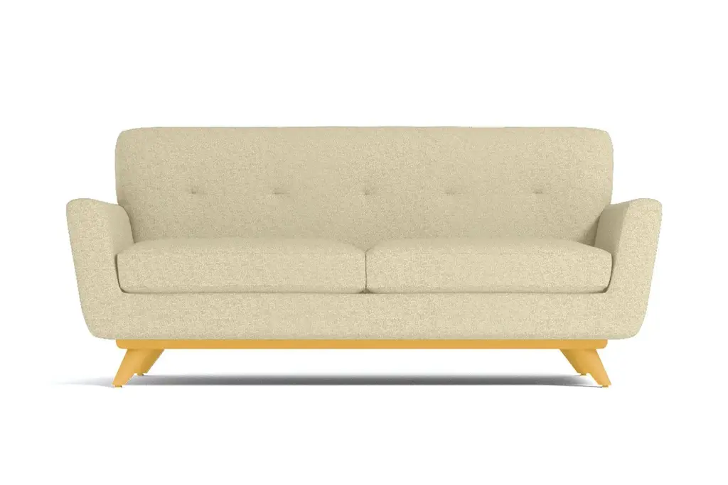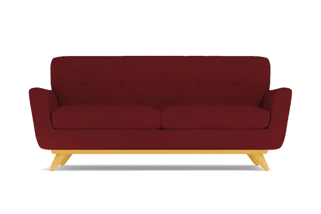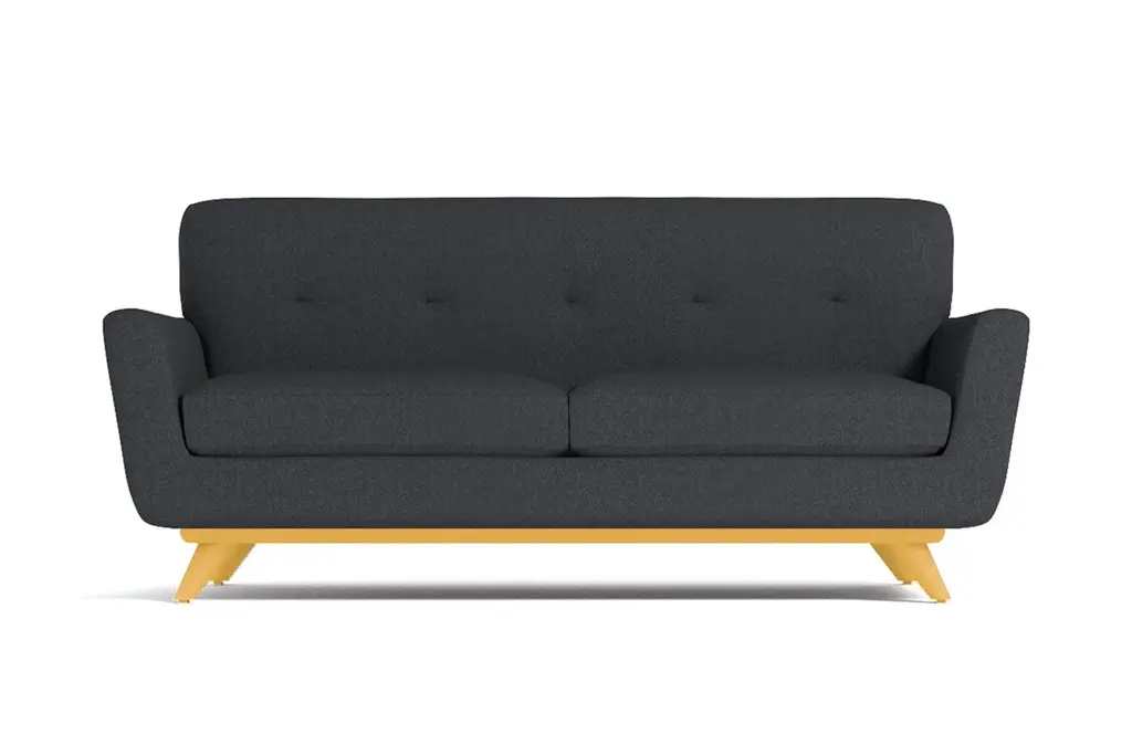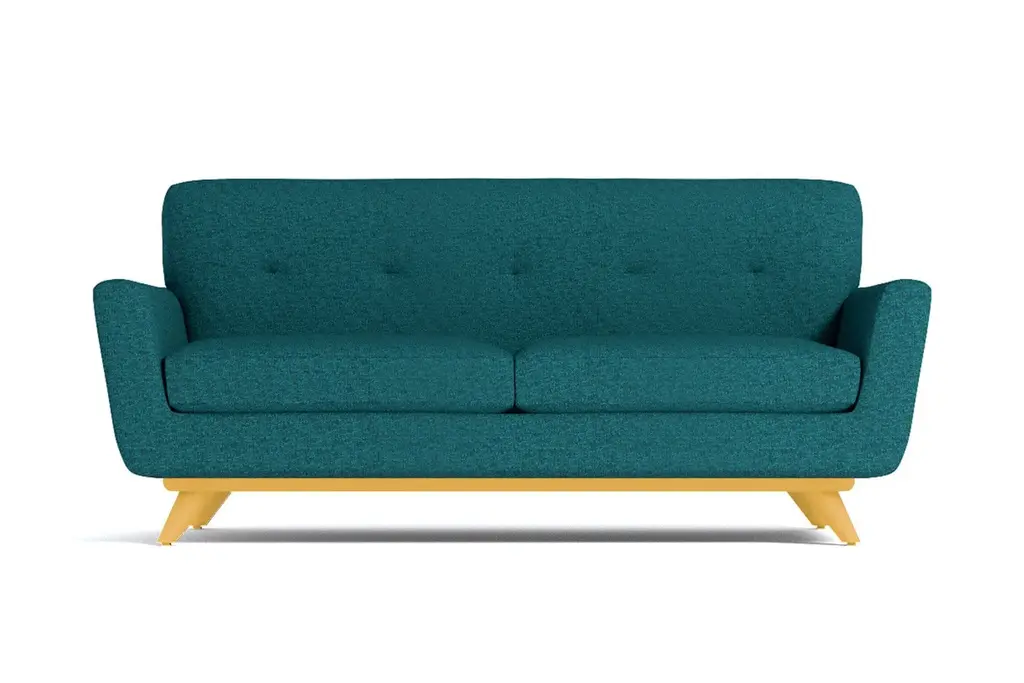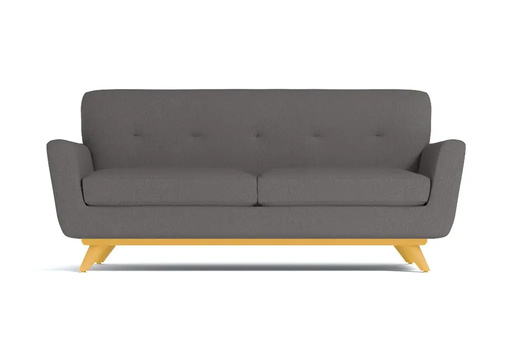 If you choose one midcentury item for your apartment, make sure it's the Carson Loveseat. It's both retro and futuristic (look it up - it's a thing), with a flared silhouette, tufted back cushioning and a solid pecan wood base. Look at how those legs angle outward adding to the modern aesthetic. And this sofa isn't just about looks. We're not shallow! Its deep cushions and solid back make for a comfortable respite far from the busy world. This sofa was built with apartment dwellers in mind - we know space is a hot commodity and the Carson is just what you need if square footage is at a minimum. You get to choose from our 27 exciting colors, one of which is sure to be the perfect compliment to your space. With flared arms, button tufted back cushioning and a sleek solid pecan wood base, this is one of the hottest looks around!