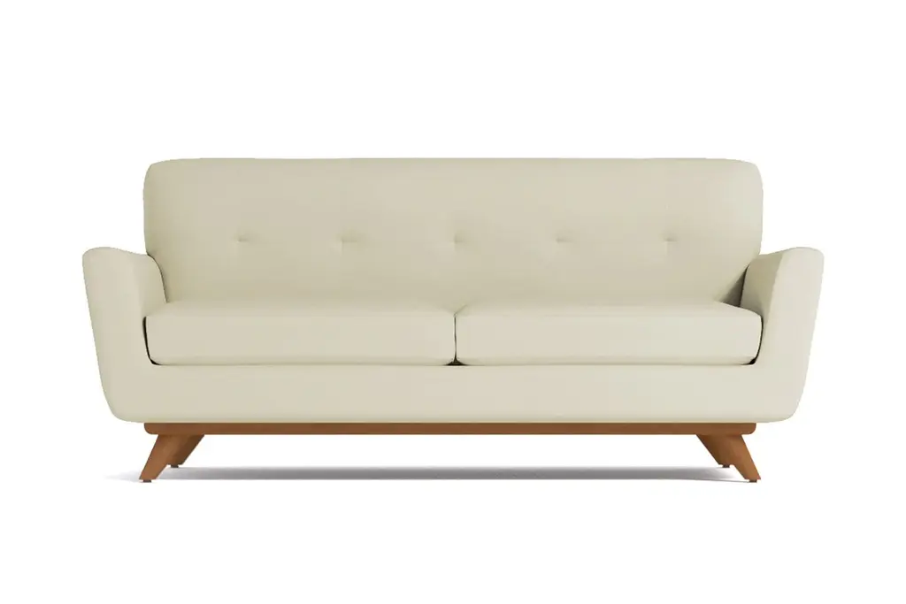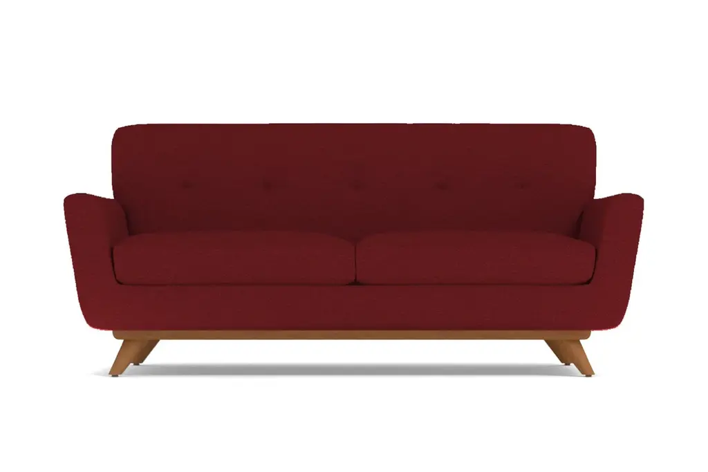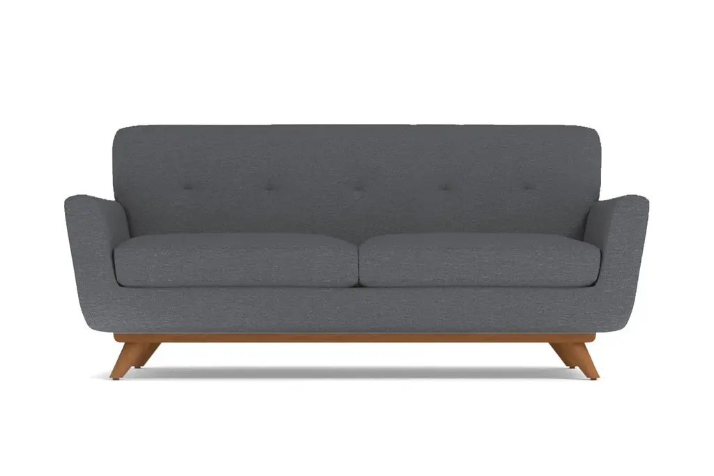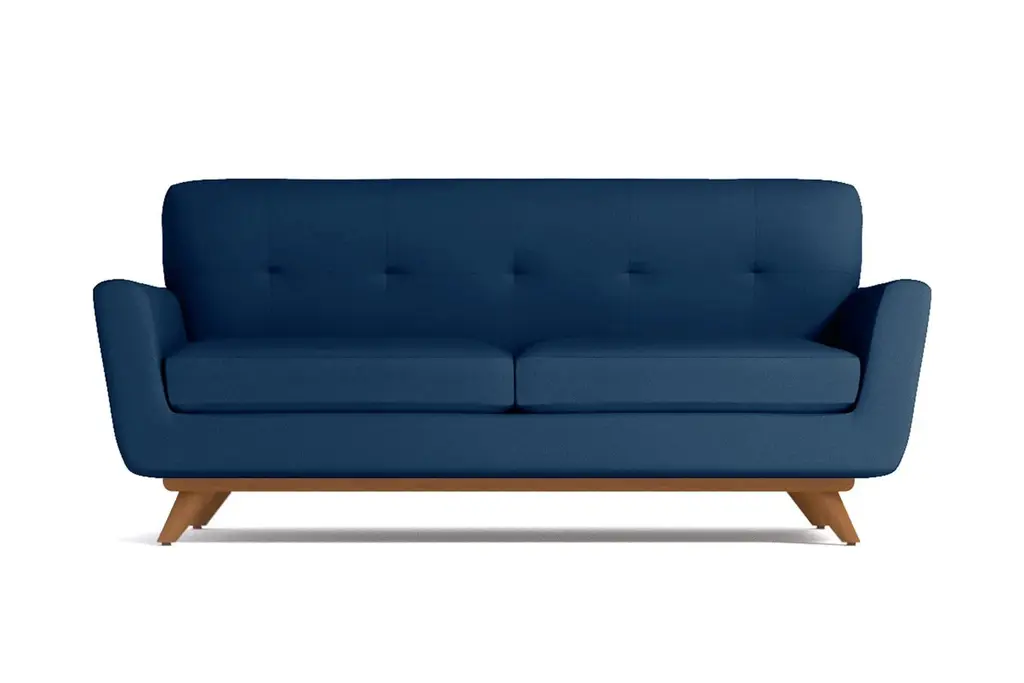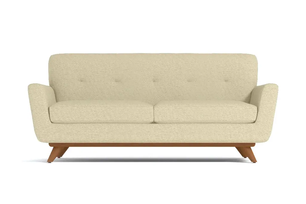 If you choose one midcentury item for your apartment, make sure it's the Carson Loveseat. It's both retro and futuristic (look it up - it's a thing), with a flared silhouette, tufted back cushioning and a solid pecan wood base. Look at how those legs angle outward adding to the modern aesthetic. And this sofa isn't just about looks. We're not shallow! Its deep cushions and solid back make for a comfortable respite far from the busy world. This sofa was built with apartment dwellers in mind - we know space is a hot commodity and the Carson is just what you need if square footage is at a minimum. You get to choose from our 27 exciting colors, one of which is sure to be the perfect compliment to your space. With flared arms, button tufted back cushioning and a sleek solid pecan wood base, this is one of the hottest looks around!