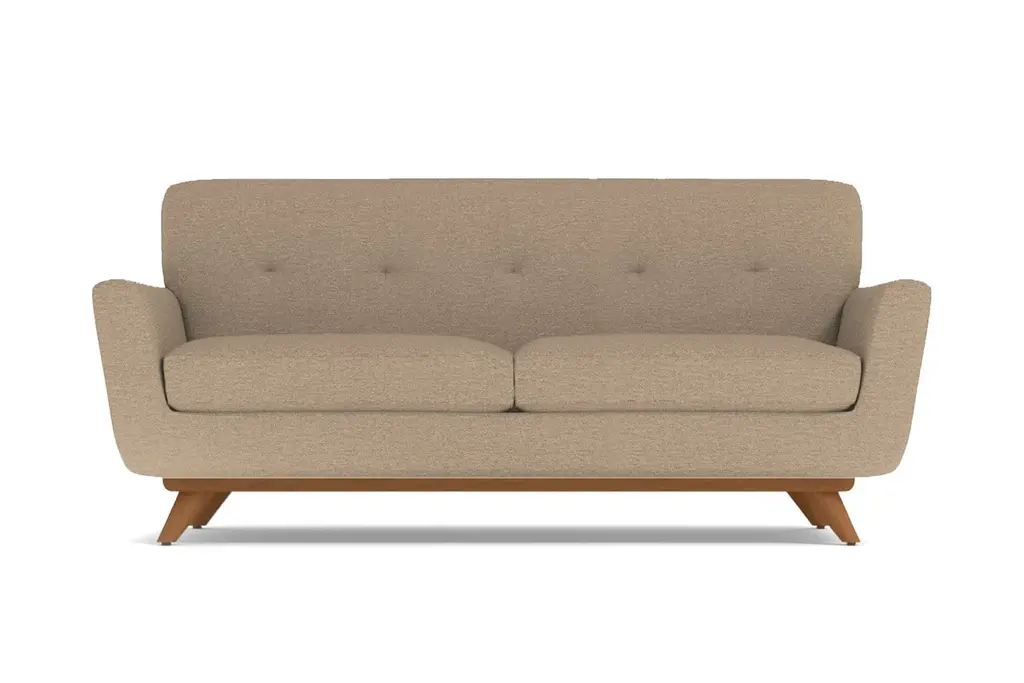 If you choose one midcentury item for your apartment, make sure it's the Carson Loveseat. It's both retro and futuristic (look it up - it's a thing), with a flared silhouette, tufted back cushioning and a solid pecan wood base. Look at how those legs angle outward adding to the modern aesthetic. And this sofa isn't just about looks. We're not shallow! Its deep cushions and solid back make for a comfortable respite far from the busy world. This sofa was built with apartment dwellers in mind - we know space is a hot commodity and the Carson is just what you need if square footage is at a minimum. You get to choose from our 27 exciting colors, one of which is sure to be the perfect compliment to your space. With flared arms, button tufted back cushioning and a sleek solid pecan wood base, this is one of the hottest looks around!