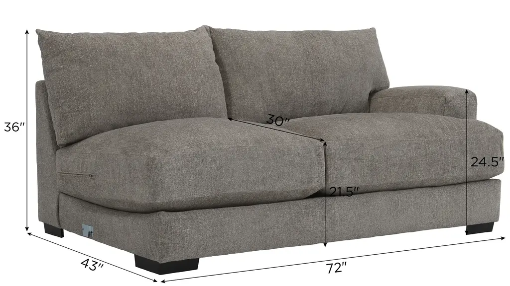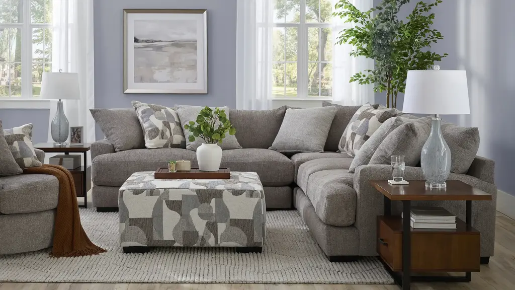 Comfortable on a grand scale, the Carter makes the perfect cornerstone for a living space with family use at the forefront. The upholstery makes it cozy, easygoing and versatile, while the accent pillows give it a punch of graphic nostalgia. Ease onto the robust and plush waterfall seat cushions and you can happily sit or sprawl for hours on end.