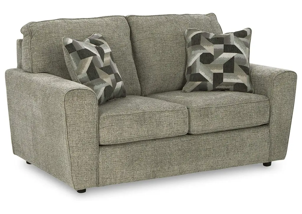Revamp your sleekly styled living room sanctuary with the Cascilla loveseat. Well-suited to contemporary spaces with a calming neutral upholstery in a pewter hue, it makes a subtle design statement in your space whether you’re hosting guests or enjoying a night in. Enamoring with its streamlined design, it’s a simply stylish way to sink into superior comfort. Weight 103.000 lbs. (46.35kgs.)