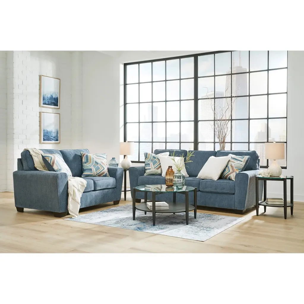 Relax in casual comfort with the Cashton Loveseat. Upholstered in soft polyester and built with a corner-blocked frame, it features high-quality reversible cushions and stylish faux wood feet. A compact, classic choice for smaller spaces or layered seating.