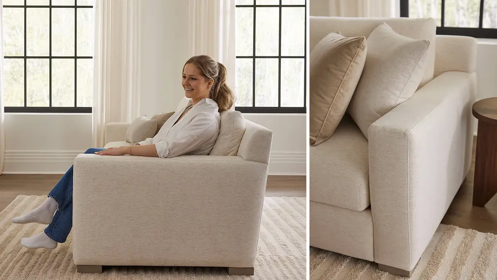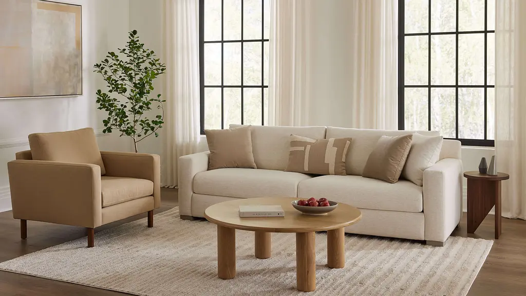 DESIGN The Catalina collection redefines modern furniture with its focus on unparalleled comfort. Sink into pillowy softness with the Catalina Loveseat's waterfall seat cushion and cozy back cushions, all designed for a luxurious feel with lasting support. Our new cushion construction provides a plush seating experience that retains its shape, ensuring both comfort and support. Catalina's design emphasizes clean lines and functionality. The built-in pitch beckons relaxation, while the modern take on a classic silhouette adds a touch of sophistication. The non-reversible bullnose seat cushion provides a sleek and undeniably seamless modern look. Cozy corners invite you to curl up with a good book, while the tailored design ensures the collection feels both stylish and approachable. FEATURES Solid Foundation: Our frames are constructed from precision-cut, FSC-certified engineered wood for unmatched strength and stability, featuring reinforced, interlocking joinery for added durability. Crafted for Coziness & Durability: Seat cushions are made from high-quality, high-resiliency CertiPUR-US® foam wrapped in fiber; back cushions are filled with 100% premium fiber for a cozy sit that doesn't require frequent fluffing. CertiPur-US® foam is held to the highest standards of product safety and durability, so you can rest easy. Supportive Webbing Suspension: Designed to maximize comfort, our premium webbing system provides a resilient foundation. Customizable Upholstery: Choose from a vast selection of durable premium and performance fabrics and genuine Italian leather to personalize your Catalina Loveseat's look.