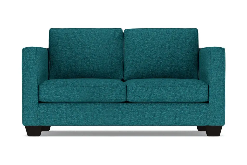 People are busy, and not everyone can pack up and head to Catalina Island anytime they please. If you can, then we salute you. But anyone can enjoy a relaxing evening in their home with the Catalina Loveseat. Like the island, our Catalina Collection has a timelessly stylish quality. This simple but sleek sofa is available in two sizes, a compact 58 inch loveseat or a 6-foot wide Loveseat that comfortably seats two (or fits one friend after a long night.) The high track arm is ideal for taller people, while the wooden blocked feet won't dig into your floor. Apt2B has this and many other condo size sofas in a variety of fabric choices, and we hand-make each one in the U.S. with a limited lifetime warranty for the best value you can find. The Catalina Collection is the perfect choice for a look that never goes out of style. It's simple and sleek design features a high track arm and wooden blocked feet.