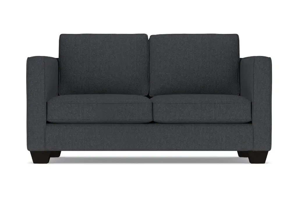 People are busy, and not everyone can pack up and head to Catalina Island anytime they please. If you can, then we salute you. But anyone can enjoy a relaxing evening in their home with the Catalina Loveseat. Like the island, our Catalina Collection has a timelessly stylish quality. This simple but sleek sofa is available in two sizes, a compact 58 inch loveseat or a 6-foot wide Loveseat that comfortably seats two (or fits one friend after a long night.) The high track arm is ideal for taller people, while the wooden blocked feet won't dig into your floor. Apt2B has this and many other condo size sofas in a variety of fabric choices, and we hand-make each one in the U.S. with a limited lifetime warranty for the best value you can find. The Catalina Collection is the perfect choice for a look that never goes out of style. It's simple and sleek design features a high track arm and wooden blocked feet.