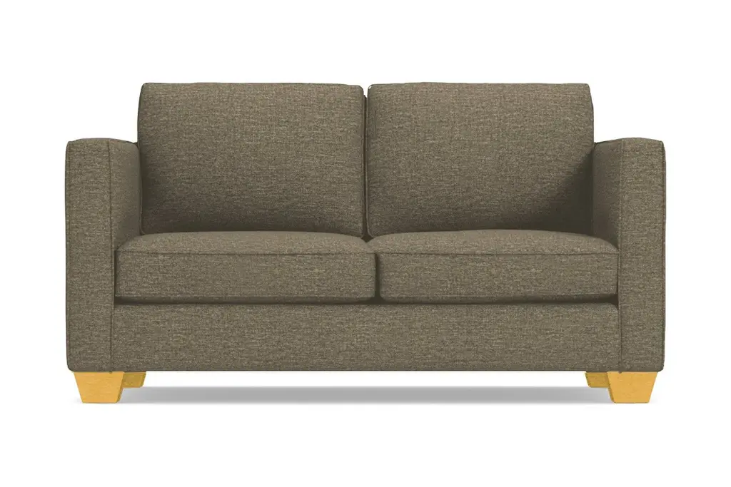 People are busy, and not everyone can pack up and head to Catalina Island anytime they please. If you can, then we salute you. But anyone can enjoy a relaxing evening in their home with the Catalina Loveseat. Like the island, our Catalina Collection has a timelessly stylish quality. This simple but sleek sofa is available in two sizes, a compact 58 inch loveseat or a 6-foot wide Loveseat that comfortably seats two (or fits one friend after a long night.) The high track arm is ideal for taller people, while the wooden blocked feet won't dig into your floor. Apt2B has this and many other condo size sofas in a variety of fabric choices, and we hand-make each one in the U.S. with a limited lifetime warranty for the best value you can find. The Catalina Collection is the perfect choice for a look that never goes out of style. It's simple and sleek design features a high track arm and wooden blocked feet.