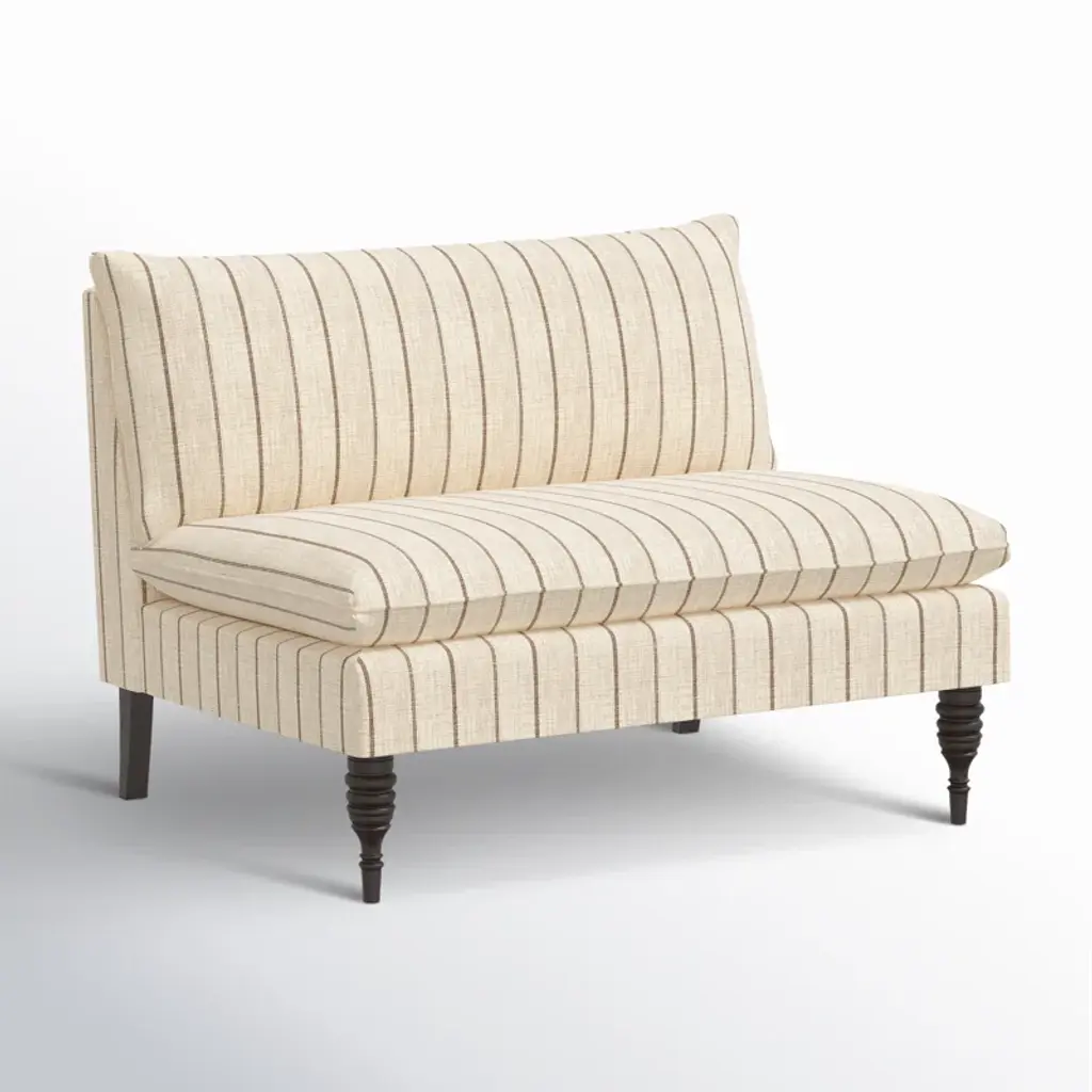 This made-to-order loveseat is ideal for smaller-sized living rooms or when you want to introduce more seating into your larger living area. It has two turned front legs and an armless design that brings feelings of the traditional home to your space. The wood frame is wrapped in the upholstery of your choice; we love the variety of patterns and hues available.