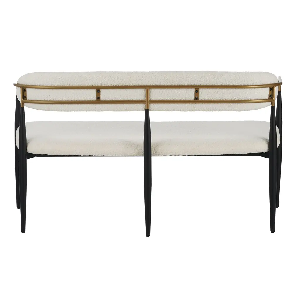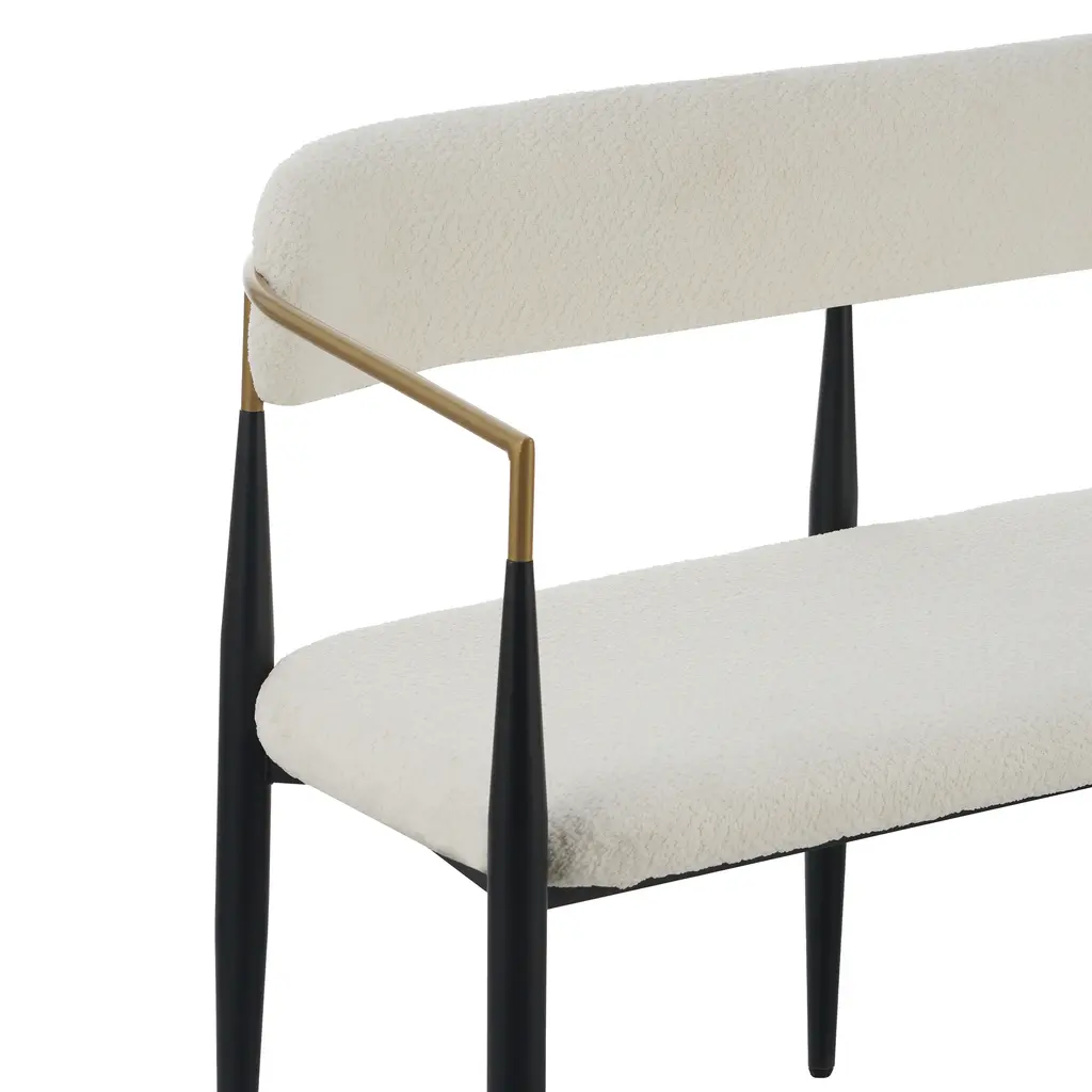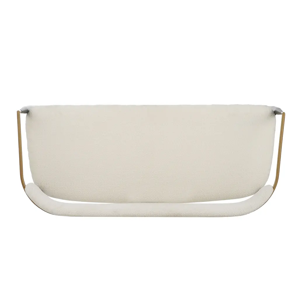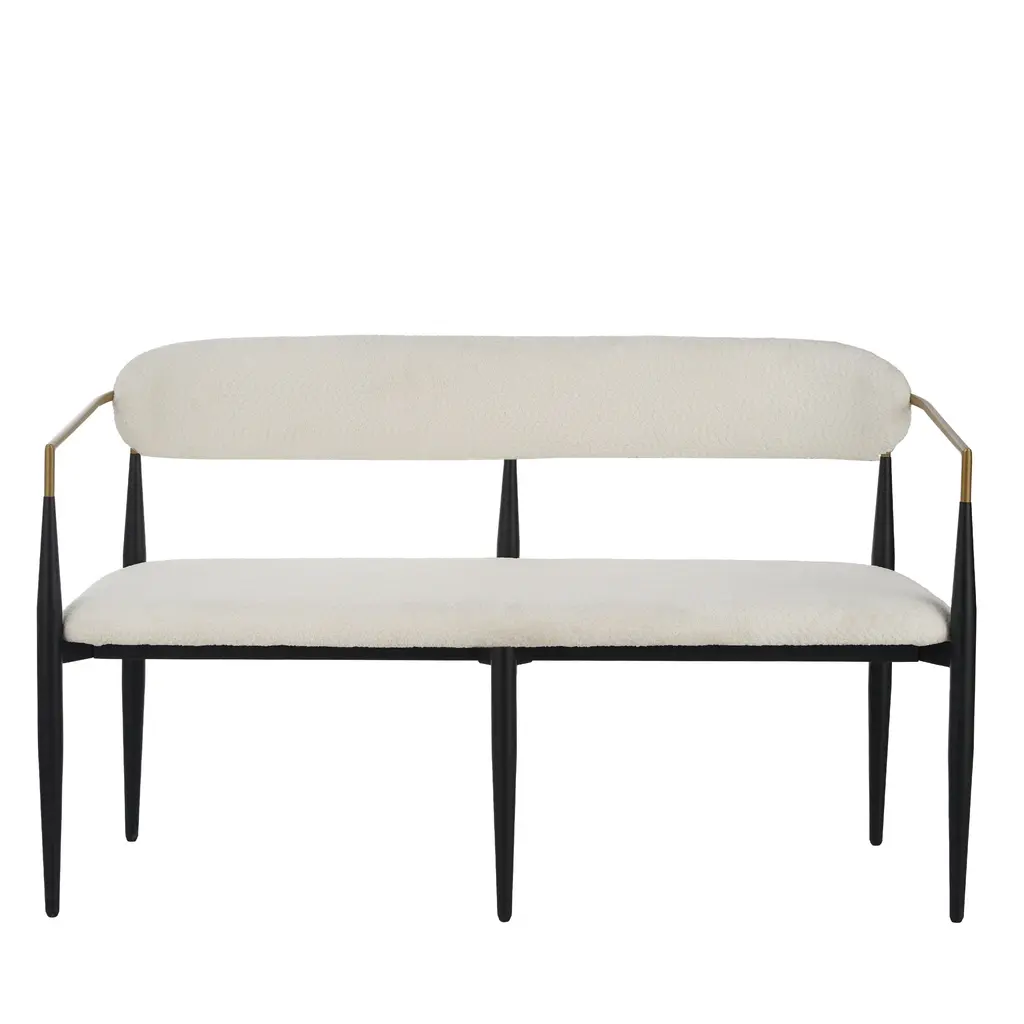 Sleek and Contemporary Design: Designed with clean lines and a refined silhouette, this loveseat settee adds a modern touch to any space. The curved open backrest and toothpick-style frame enhance its chic and minimalistic appeal, making it a perfect statement piece. Comfortable Upholstered Seating: Generously padded and upholstered, this loveseat provides plush seating for ultimate relaxation. Its smooth and refined texture ensures both style and comfort, making it ideal for lounging or entertaining guests. Compact Yet Spacious: At 55 inches wide, this loveseat balances a space-saving design with ample seating. Whether placed in an apartment, loft, or bedroom, it seamlessly blends into any room while providing comfortable seating for two. Durable Iron Frame: Built with a sturdy iron frame, this loveseat offers long-lasting durability. The combination of a sleek base and elegant trim enhances its structure, ensuring stability and reliability for everyday use. Versatile Accent Piece: Perfect for living rooms, entryways, or stylish seating in a bedroom, this loveseat adapts to various spaces. Its timeless design complements a range of interiors, from modern to classic.