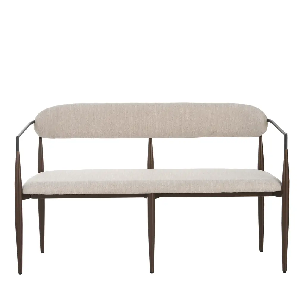 Sleek and Contemporary Design: Designed with clean lines and a refined silhouette, this loveseat settee adds a modern touch to any space. The curved open backrest and toothpick-style frame enhance its chic and minimalistic appeal, making it a perfect statement piece. Comfortable Upholstered Seating: Generously padded and upholstered, this loveseat provides plush seating for ultimate relaxation. Its smooth and refined texture ensures both style and comfort, making it ideal for lounging or entertaining guests. Compact Yet Spacious: At 55 inches wide, this loveseat balances a space-saving design with ample seating. Whether placed in an apartment, loft, or bedroom, it seamlessly blends into any room while providing comfortable seating for two. Durable Iron Frame: Built with a sturdy iron frame, this loveseat offers long-lasting durability. The combination of a sleek base and elegant trim enhances its structure, ensuring stability and reliability for everyday use. Versatile Accent Piece: Perfect for living rooms, entryways, or stylish seating in a bedroom, this loveseat adapts to various spaces. Its timeless design complements a range of interiors, from modern to classic.