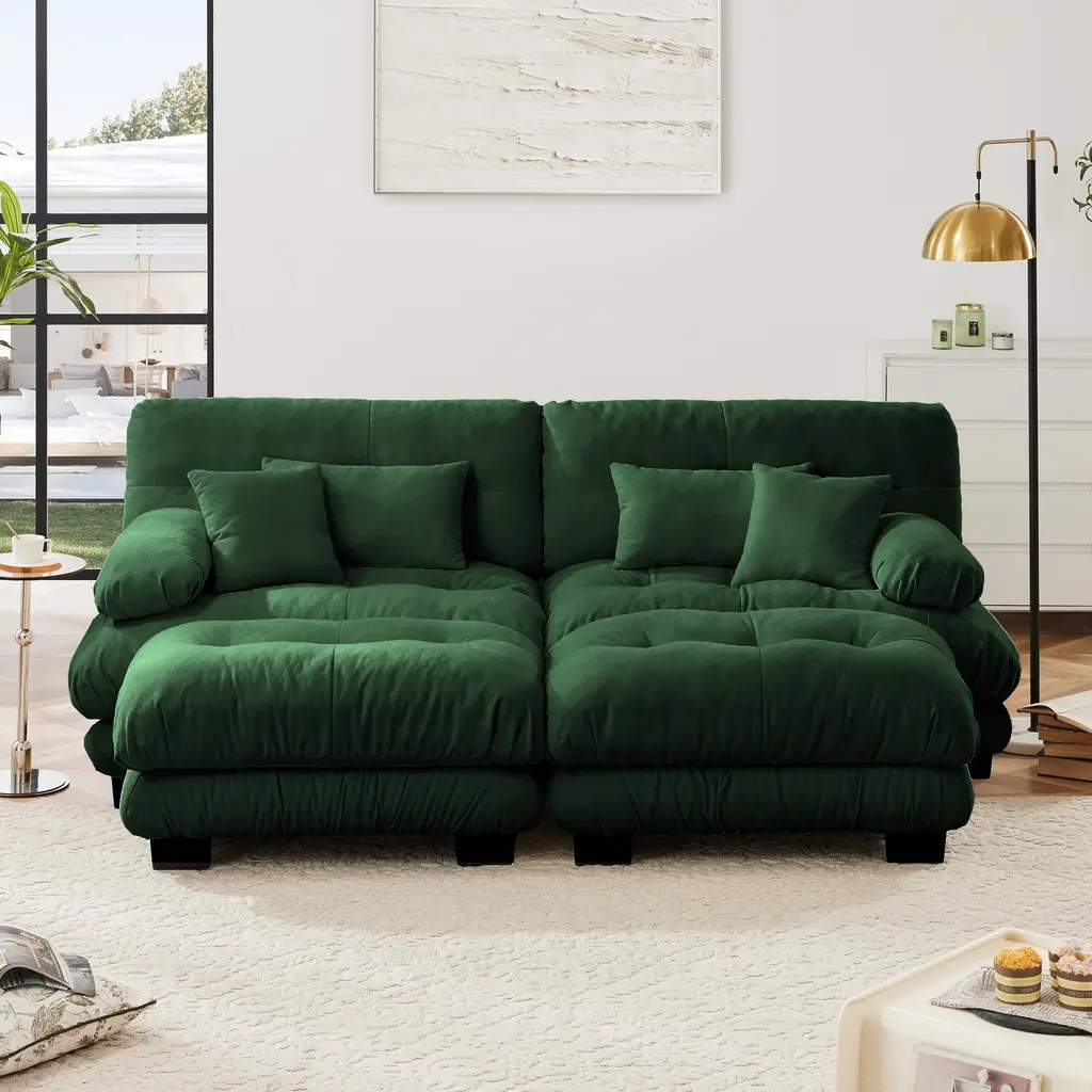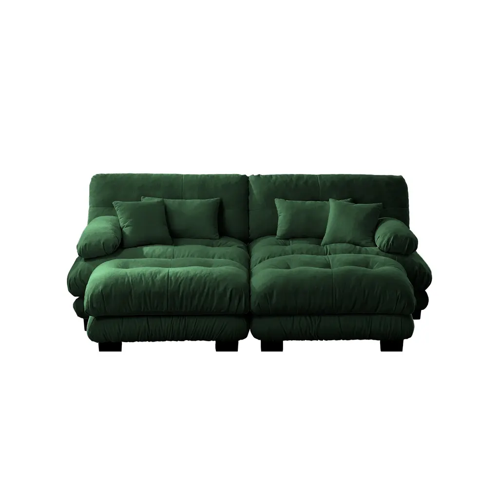 Cloud Couch 2-Seater Sofa With 2 Convertible Ottomans - Green