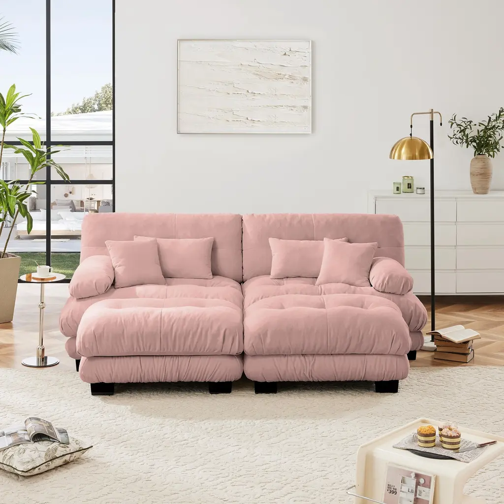 Cloud Couch 2-Seater Sofa With 2 Convertible Ottomans - Pink