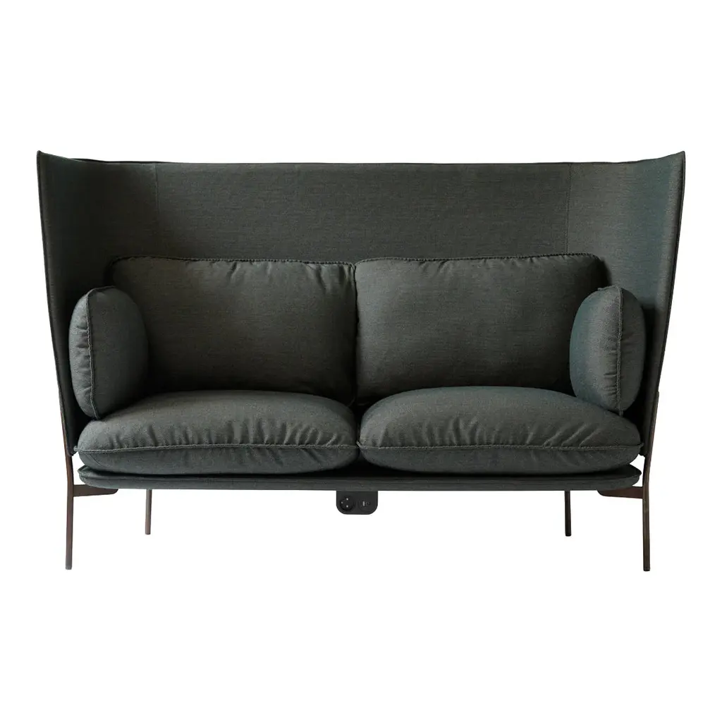 Designed to be spacious and expansive, Italian-born, Swedish-based designer Luca Nichetto wanted to minimize anything voluminous and accentuate the look and feel of lightness. Seen in this new version of Cloud Sofas with a high back. The secret to Cloud's truly hygge sensation involves feather and foam filled seat cushions resting on an upholstered solid wood base. Slim steel legs keep the base "afloat", with a special coating in black, chrome or bronzed. The cushions along the back are secured in place with a curved shell that extends quite high above your back, constructed from foam wrapped plywood covered in the same textile to match the cushions.