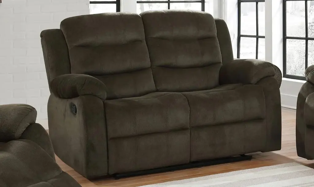 Introducing the Coaster Furniture Rodman Tufted Back Motion Loveseat, a perfect blend of elegance and comfort that transforms any living space into a sanctuary of relaxation. Designed with leisurely lounging in mind, this loveseat features a triple channeled back and scoop seating, providing superior comfort that invites you to unwind. The sumptuous velvet upholstery, crafted from high-quality polyester, envelops you in a luxurious texture, while the reclining seats offer sturdy support to prop up tired feet, enhancing your relaxation experience. Available in two-tone chocolate or tan, this loveseat effortlessly complements your decor with its versatile color options.