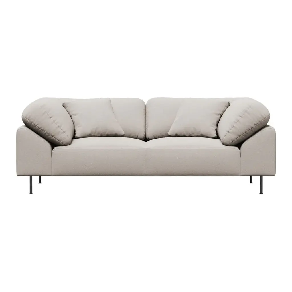 Using voluminous curves and askew arranged back cushions, Collar reinterprets classic sofa design into a contemporary appealing appearance. Delta shaped sides perfectly support the cushion in a wide-angle for comfortable lounging. Combined with the low backrest, the continuous back cushion functions like a collar and when sinking into the carefully selected soft memory foam you achieve the feeling of a soft and deep hug. Communicating its comfort through a welcoming and warm design. Fire Retardant Foam is available upon request. Please contact us for further information.