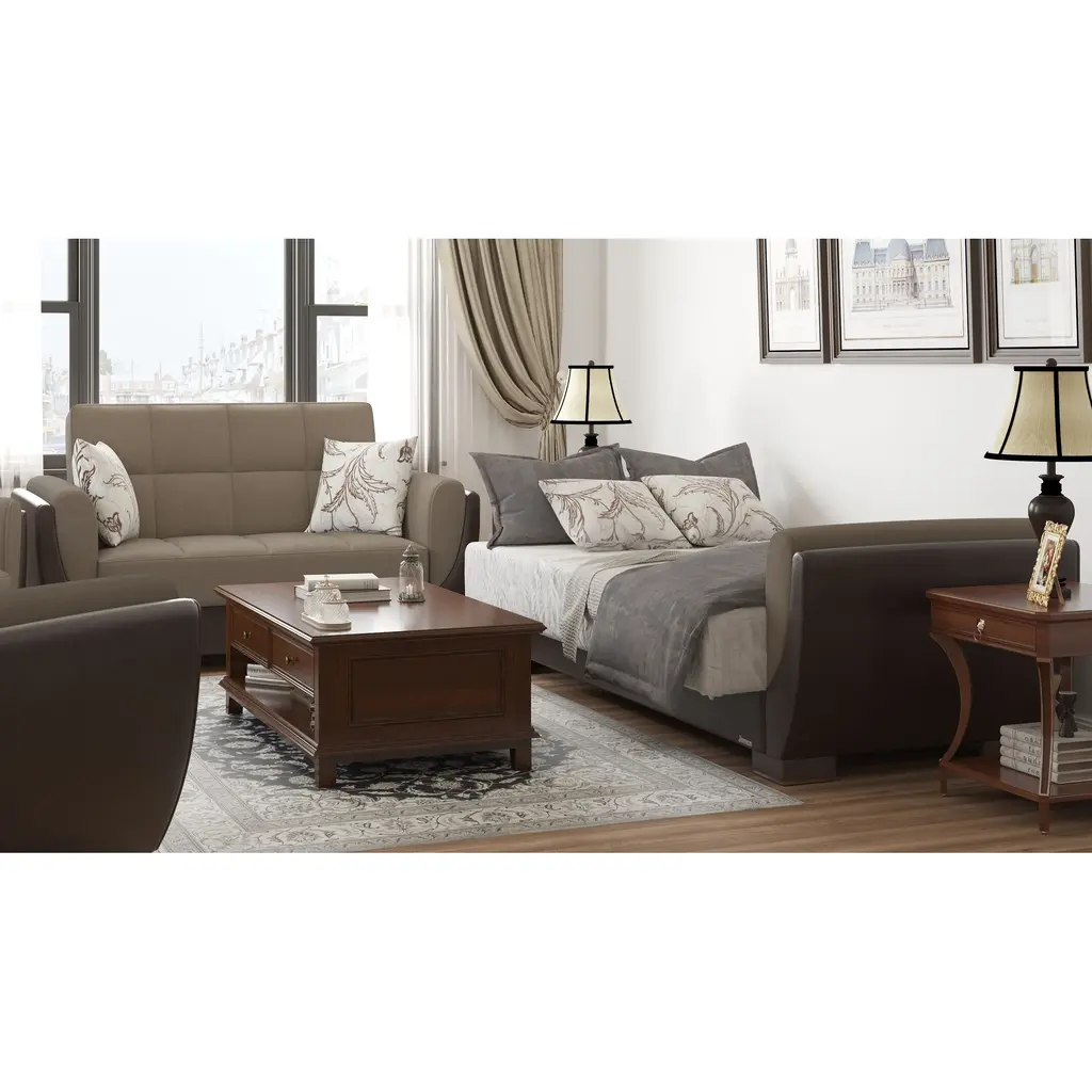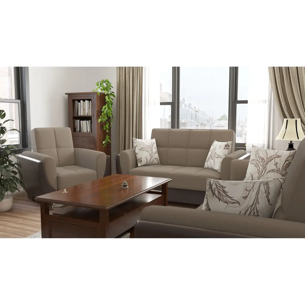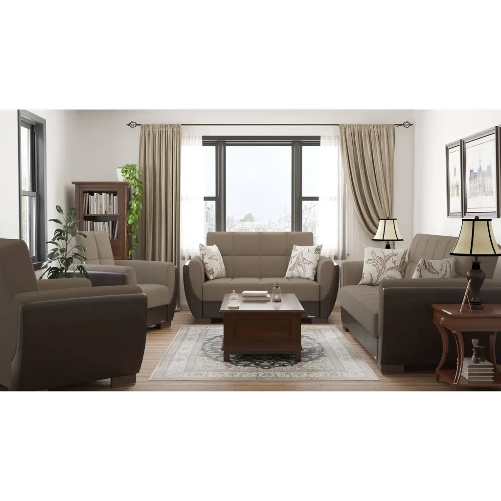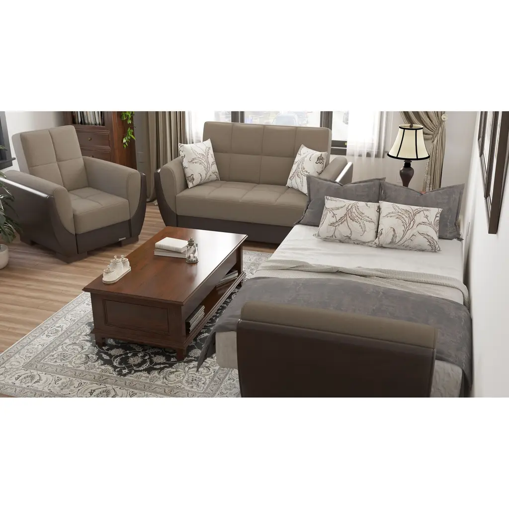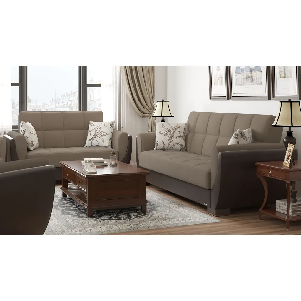 Collection Upholstered Convertible Loveseat With Storage - Beige,brown Pu