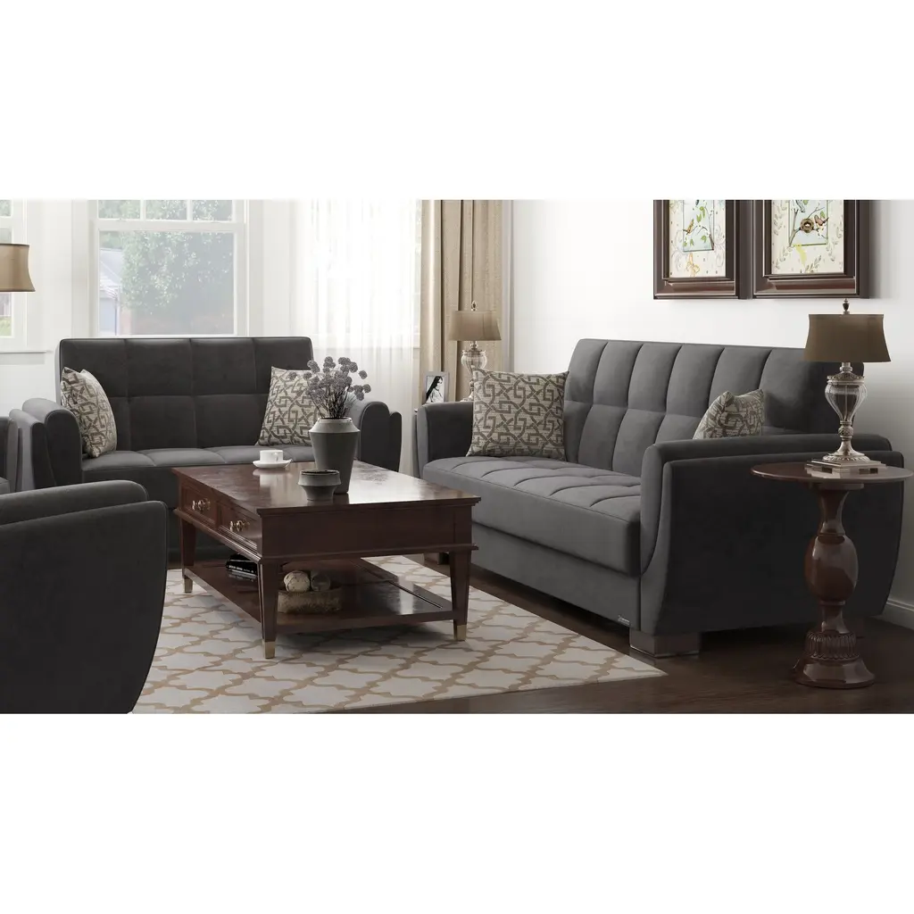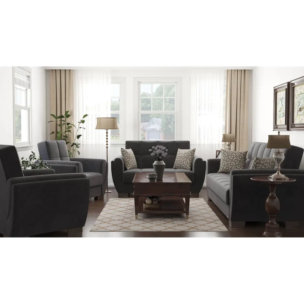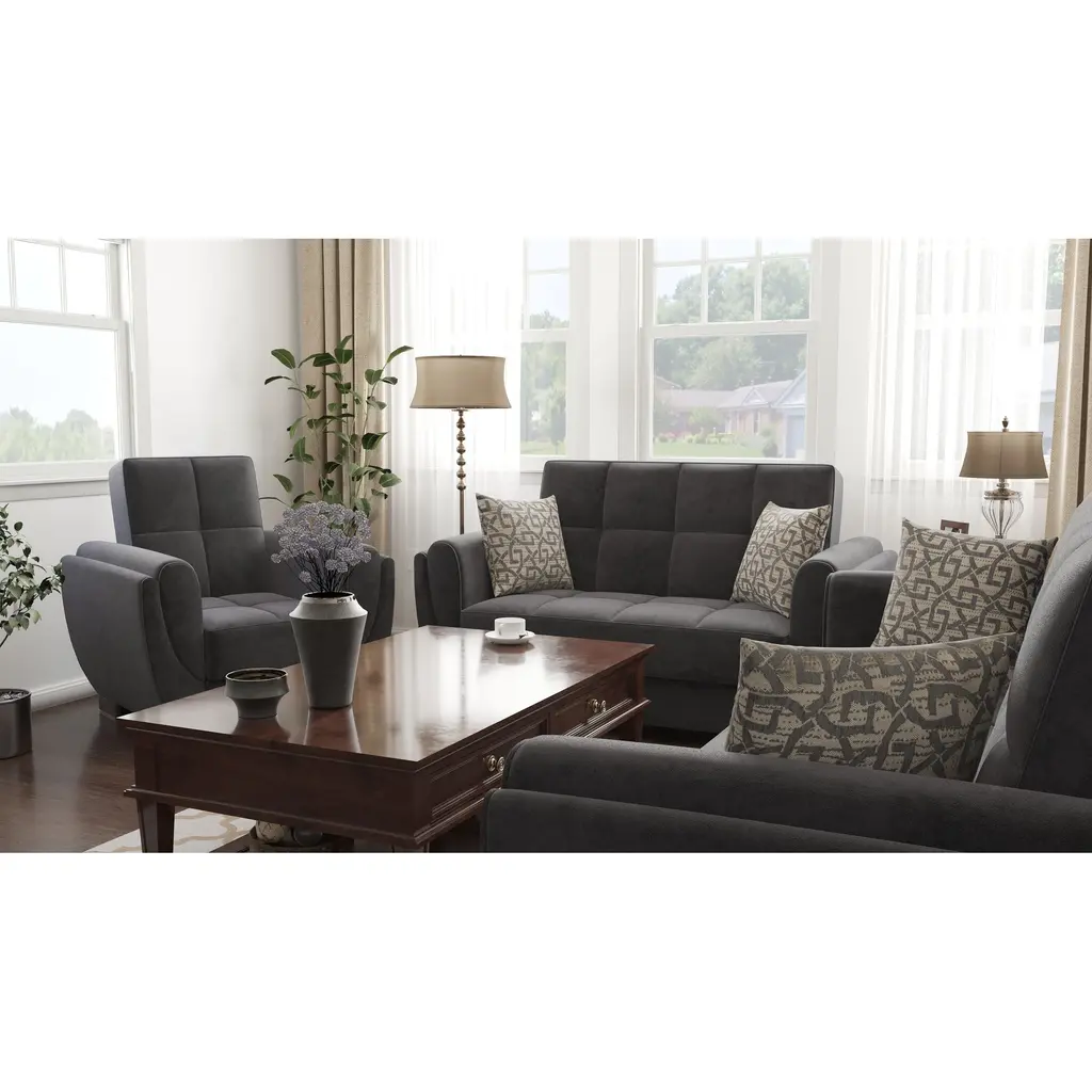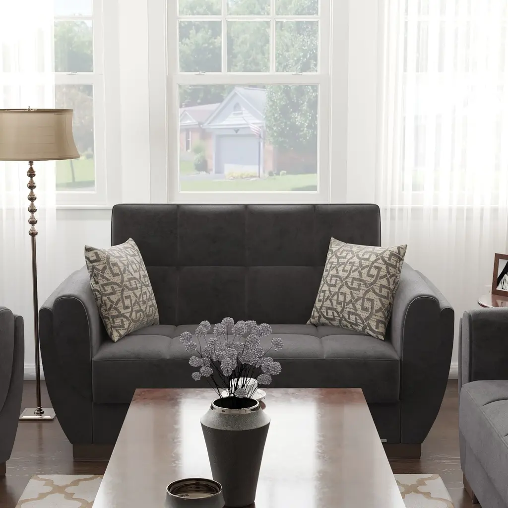 ▷Rest with the best in the comfort of your family and friends. We welcome you to try out our new NimbusFlow furniture collection in order to achieve the most optimal quality possible. Fashion and function coalesce for optimal versatility, making this furniture suitable for any space and existing decor. The classy clean-lined upholstery is Itharailable in a rich color palette for every type of aesthetic. ▷FASHIONABLY CONVENIENT: With one swift motion, transform this Loveseat into a sleeper that measures in at 50.4" x 47.2" or utilize the included storage compartments for your very own storage needs. ASSEMBLY made easy in 30 minutes or less! DISCLAIMER: ITEMS IN IMAGES SOLD SEPARATELY ▷SUITABLE FOR SMALLER SPACES: The perfect size for functionality in a studio apartment, dorm room, and even in the living room of a home! Enjoy the practicality of a full sized Loveseat without dealing with any additional unnecessary bulk. Utilize our click-click technology in order to turn this Loveseat into a bed with one swift move, thus changing your living room into a guest room. *REFER TO THE IMAGES FOR DETAILED & ACCURATE Loveseat MEASUREMENTS* ▷QUALITY CRAFTED: Quality crafted in Turkey with only the finest materials. The material is Itharailable in complete Chenille, Microfiber, and PU Leather, or combinations of Chenille ▷PU Leather or Microfiber ▷PU Leather. Accompanied by four sturdy legs that help the Loveseat hold a WEIGHT CAPACITY OF 600 LBS. ▷COMFORT & DESIGN: Our upholstered Loveseat consists of thick, firm seat cushions for optimal comfort and style. Develop your desired aesthetic environment with the included matching pillows for your Loveseat. ▷CLEANING INSTRUCTIONS: Spot clean impacted areas before any extensive cleaning is applied. Use a dry cloth with a mild amount of soap and water for any further extensive cleaning options. Please avoid any harsh chemicals in order to prevent any unnecessary discoloring. *ITEMS PICTURED ARE SOLD SEPARATELY* ▷MEMORIES: Enjoy sports events with close friends, appreciate quality time in the comfort of your family, or snooze on the couch while watching your favorite show.