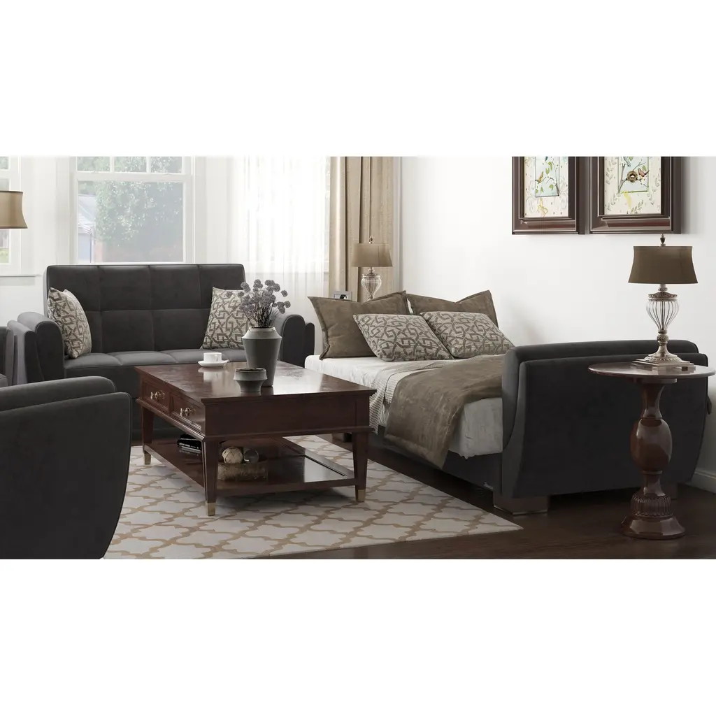 Collection Upholstered Convertible Loveseat With Storage - Black