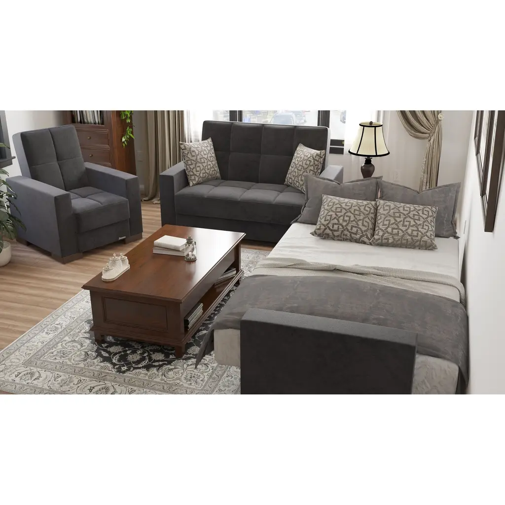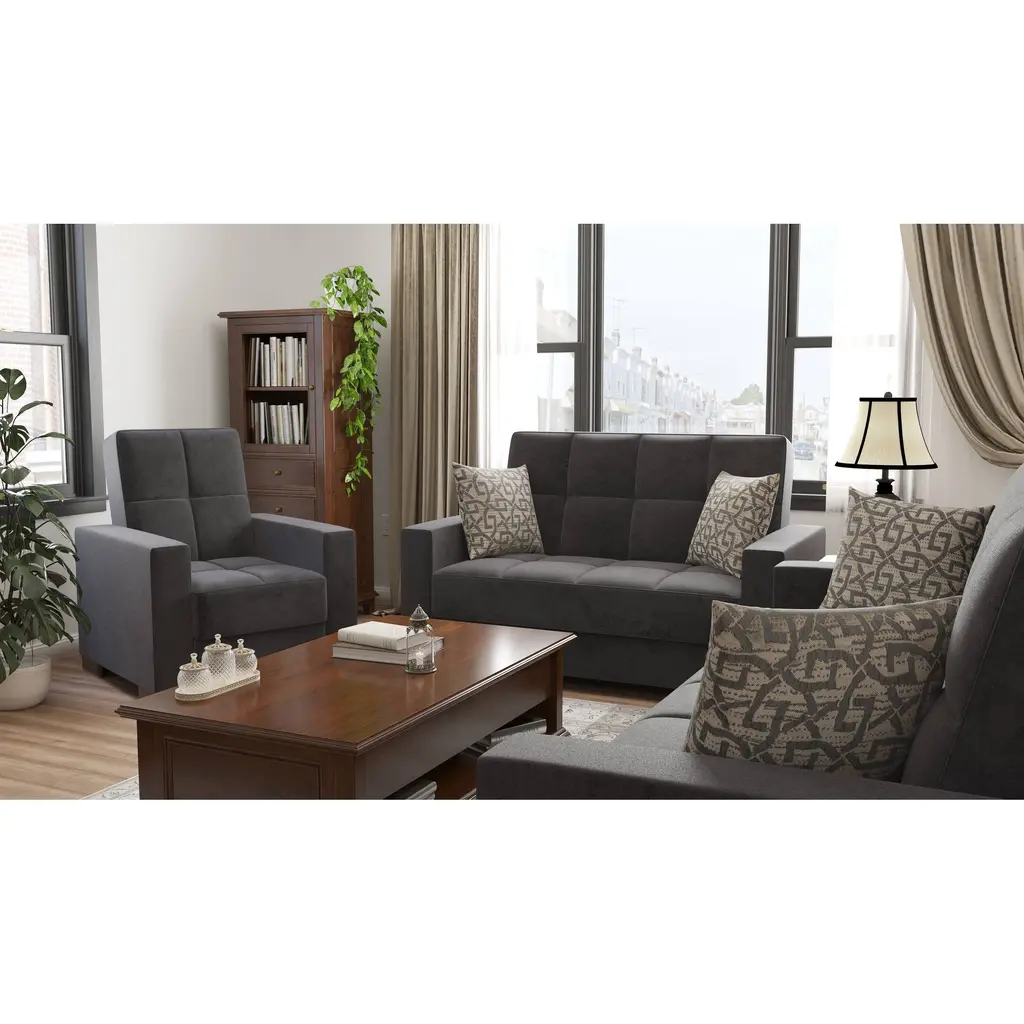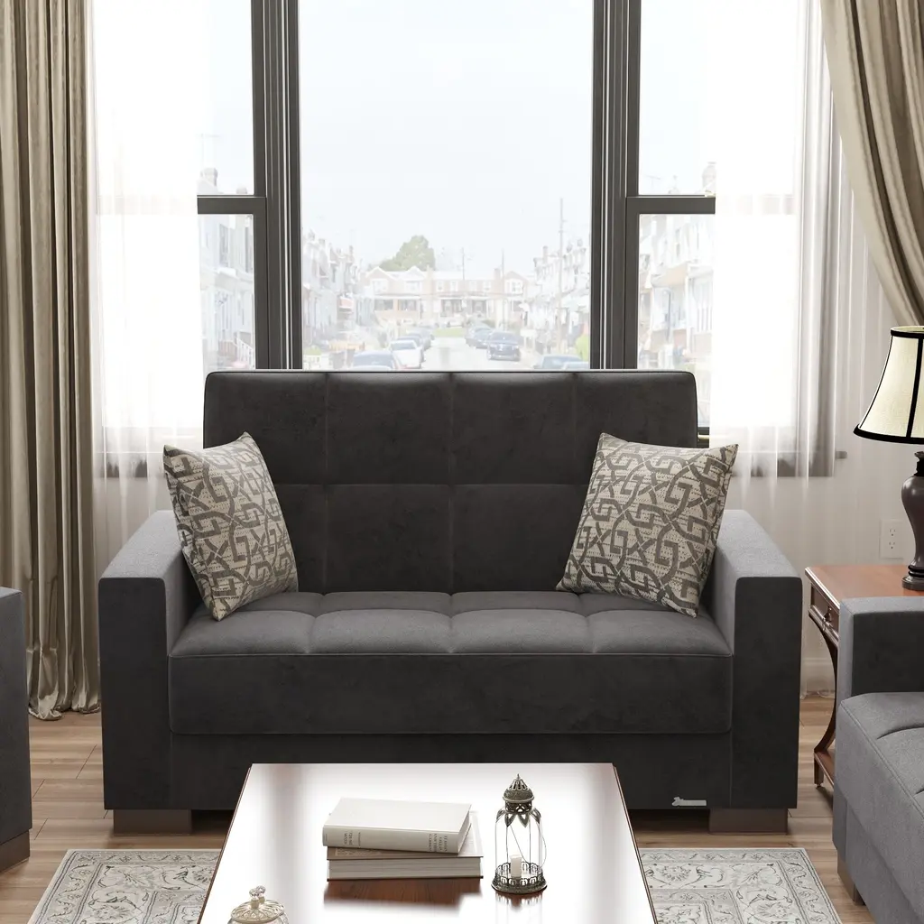 ▷Rest with the best in the comfort of your family and friends. We welcome you to try out our new ZenAero furniture collection in order to achieve the most optimal quality possible. Fashion and function coalesce for optimal versatility, making this furniture suitable for any space and existing decor. The classy clean-lined upholstery is Itharailable in a rich color palette for every type of aesthetic. ▷FASHIONABLY CONVENIENT: With one swift motion, transform this Loveseat into a sleeper that measures in at 50.4" x 47.2" or utilize the included storage compartments for your very own storage needs. ASSEMBLY made easy in 30 minutes or less! DISCLAIMER: ITEMS IN IMAGES SOLD SEPARATELY ▷SUITABLE FOR SMALLER SPACES: The perfect size for functionality in a studio apartment, dorm room, and even in the living room of a home! Enjoy the practicality of a full sized Loveseat without dealing with any additional unnecessary bulk. Utilize our click-click technology in order to turn this Loveseat into a bed with one swift move, thus changing your living room into a guest room. *REFER TO THE IMAGES FOR DETAILED & ACCURATE Loveseat MEASUREMENTS* ▷QUALITY CRAFTED: Quality crafted in Turkey with only the finest materials. The material is Itharailable in complete Chenille, Microfiber, and PU Leather, or combinations of Chenille ▷PU Leather or Microfiber ▷PU Leather. Accompanied by four sturdy legs that help the Loveseat hold a WEIGHT CAPACITY OF 600 LBS. ▷COMFORT & DESIGN: Our upholstered Loveseat consists of thick, firm seat cushions for optimal comfort and style. Develop your desired aesthetic environment with the included matching pillows for your Loveseat. ▷CLEANING INSTRUCTIONS: Spot clean impacted areas before any extensive cleaning is applied. Use a dry cloth with a mild amount of soap and water for any further extensive cleaning options. Please avoid any harsh chemicals in order to prevent any unnecessary discoloring. *ITEMS PICTURED ARE SOLD SEPARATELY* ▷MEMORIES: Enjoy sports events with close friends, appreciate quality time in the comfort of your family, or snooze on the couch while watching your favorite show.