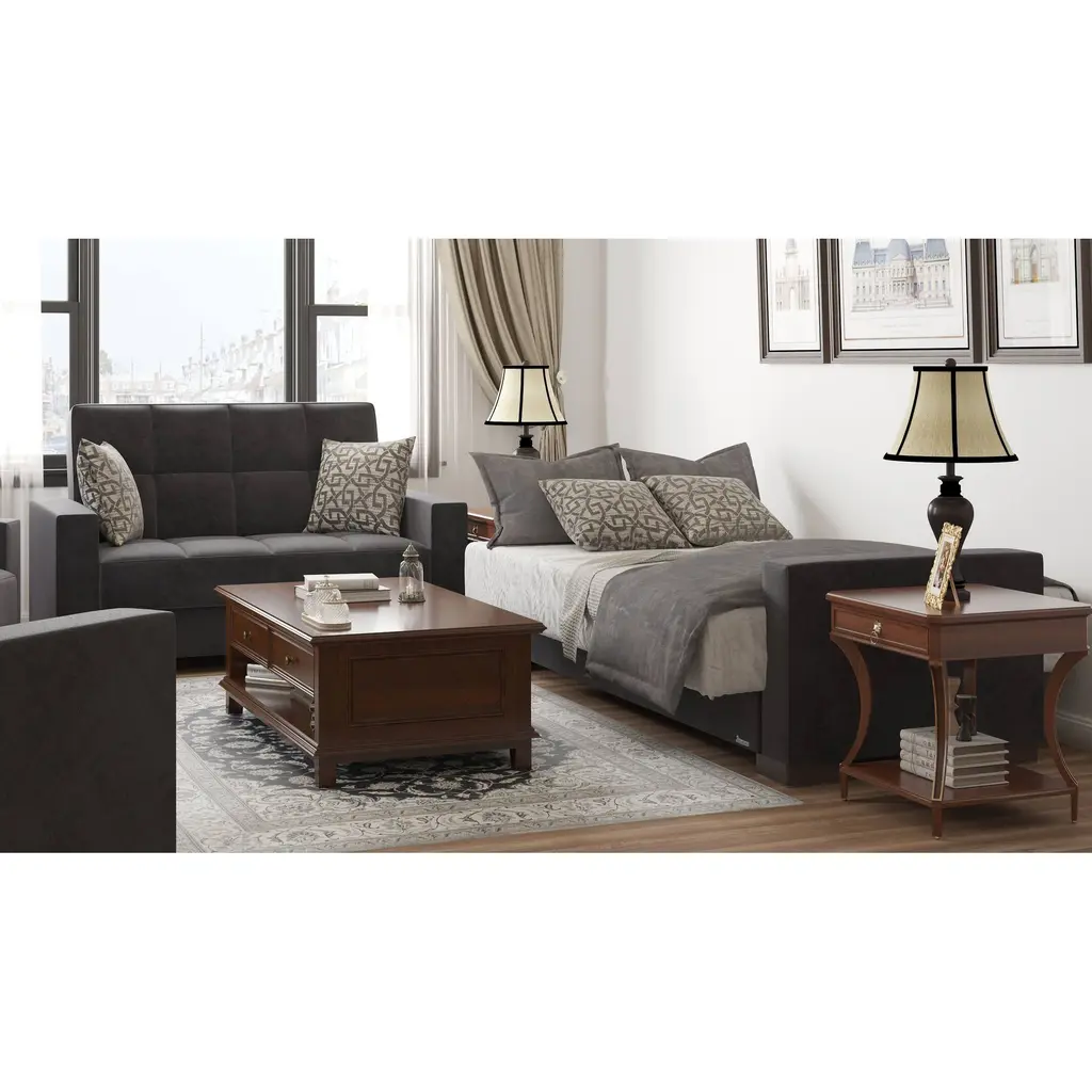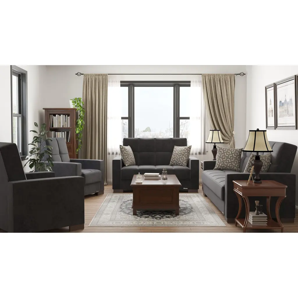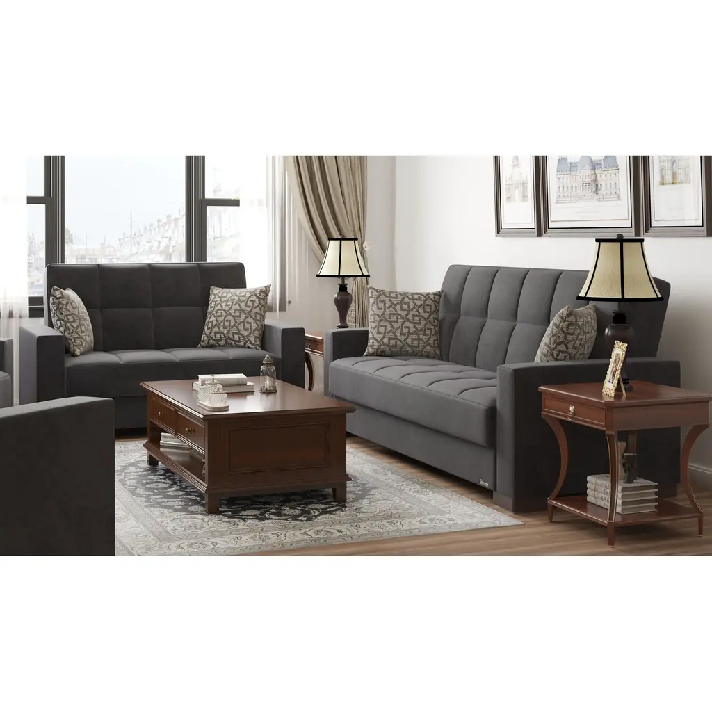 ▷Rest with the best in the comfort of your family and friends. We welcome you to try out our new ZenAero furniture collection in order to achieve the most optimal quality possible. Fashion and function coalesce for optimal versatility, making this furniture suitable for any space and existing decor. The classy clean-lined upholstery is Itharailable in a rich color palette for every type of aesthetic. ▷FASHIONABLY CONVENIENT: With one swift motion, transform this Loveseat into a sleeper that measures in at 50.4" x 47.2" or utilize the included storage compartments for your very own storage needs. ASSEMBLY made easy in 30 minutes or less! DISCLAIMER: ITEMS IN IMAGES SOLD SEPARATELY ▷SUITABLE FOR SMALLER SPACES: The perfect size for functionality in a studio apartment, dorm room, and even in the living room of a home! Enjoy the practicality of a full sized Loveseat without dealing with any additional unnecessary bulk. Utilize our click-click technology in order to turn this Loveseat into a bed with one swift move, thus changing your living room into a guest room. *REFER TO THE IMAGES FOR DETAILED & ACCURATE Loveseat MEASUREMENTS* ▷QUALITY CRAFTED: Quality crafted in Turkey with only the finest materials. The material is Itharailable in complete Chenille, Microfiber, and PU Leather, or combinations of Chenille ▷PU Leather or Microfiber ▷PU Leather. Accompanied by four sturdy legs that help the Loveseat hold a WEIGHT CAPACITY OF 600 LBS. ▷COMFORT & DESIGN: Our upholstered Loveseat consists of thick, firm seat cushions for optimal comfort and style. Develop your desired aesthetic environment with the included matching pillows for your Loveseat. ▷CLEANING INSTRUCTIONS: Spot clean impacted areas before any extensive cleaning is applied. Use a dry cloth with a mild amount of soap and water for any further extensive cleaning options. Please avoid any harsh chemicals in order to prevent any unnecessary discoloring. *ITEMS PICTURED ARE SOLD SEPARATELY* ▷MEMORIES: Enjoy sports events with close friends, appreciate quality time in the comfort of your family, or snooze on the couch while watching your favorite show.