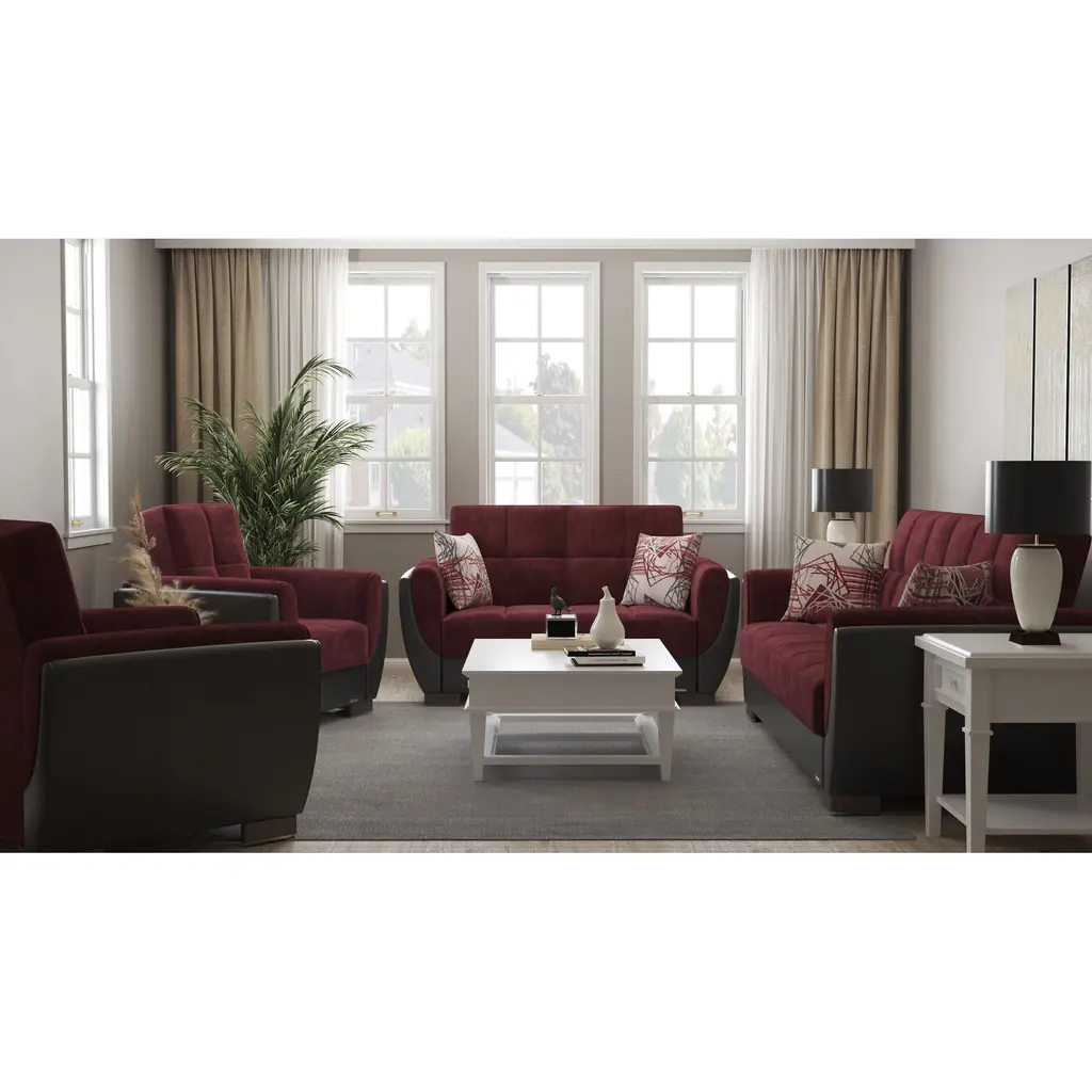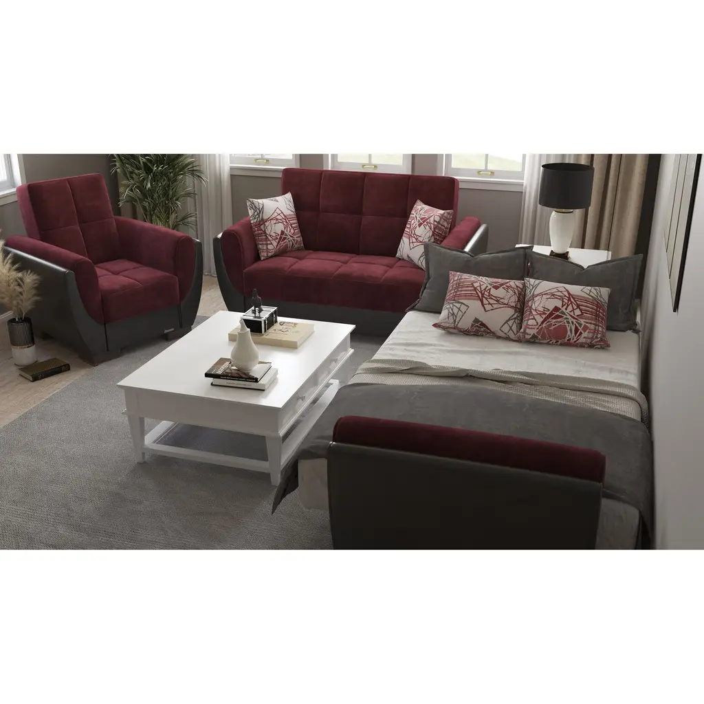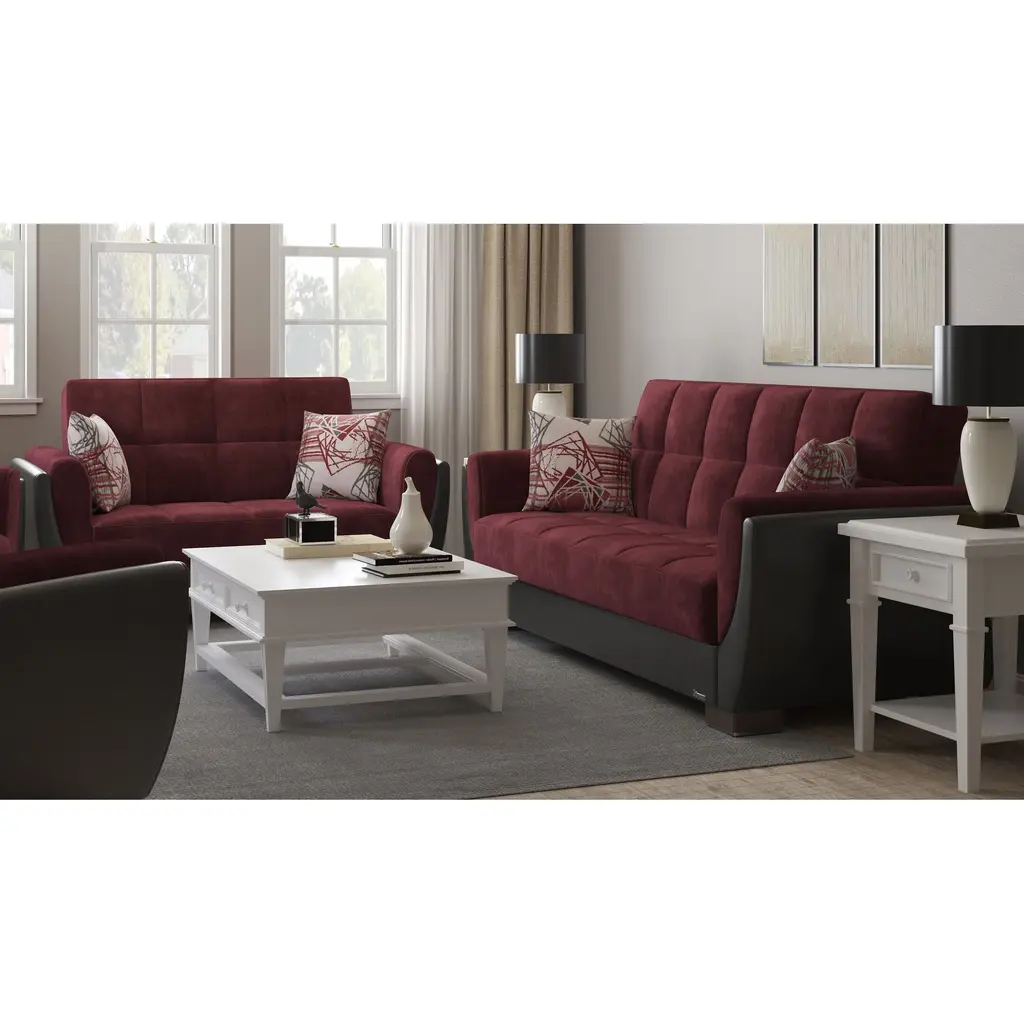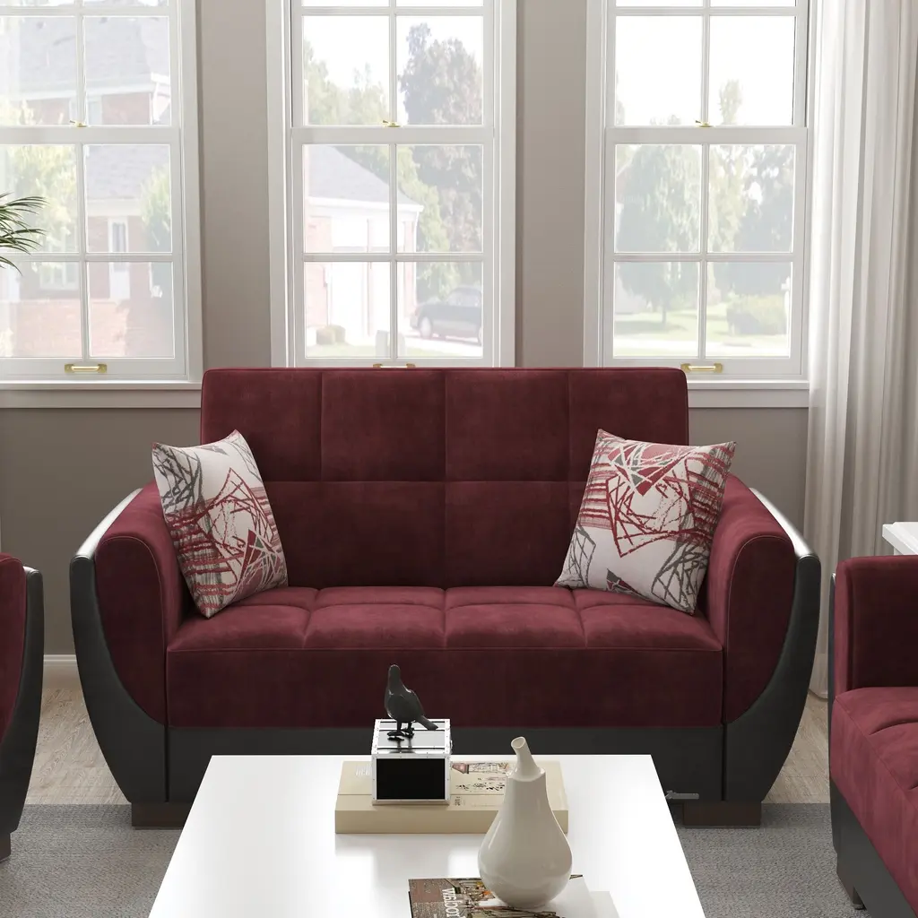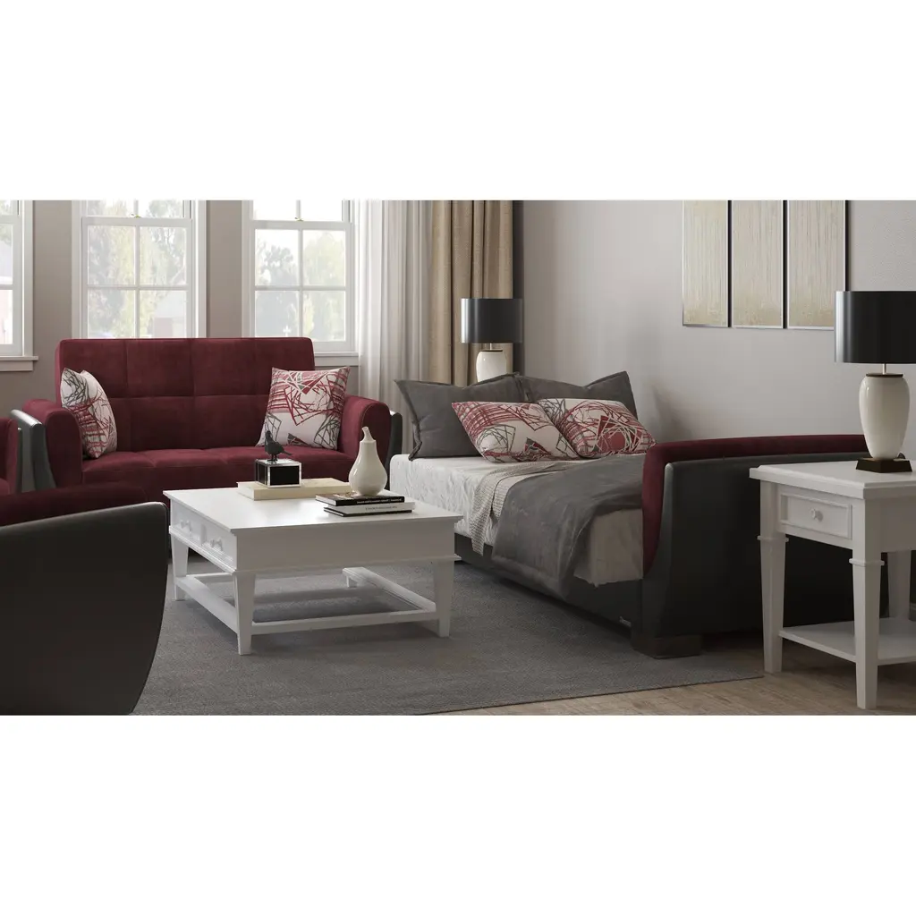 Collection Upholstered Convertible Loveseat With Storage - Black Pu,burgundy