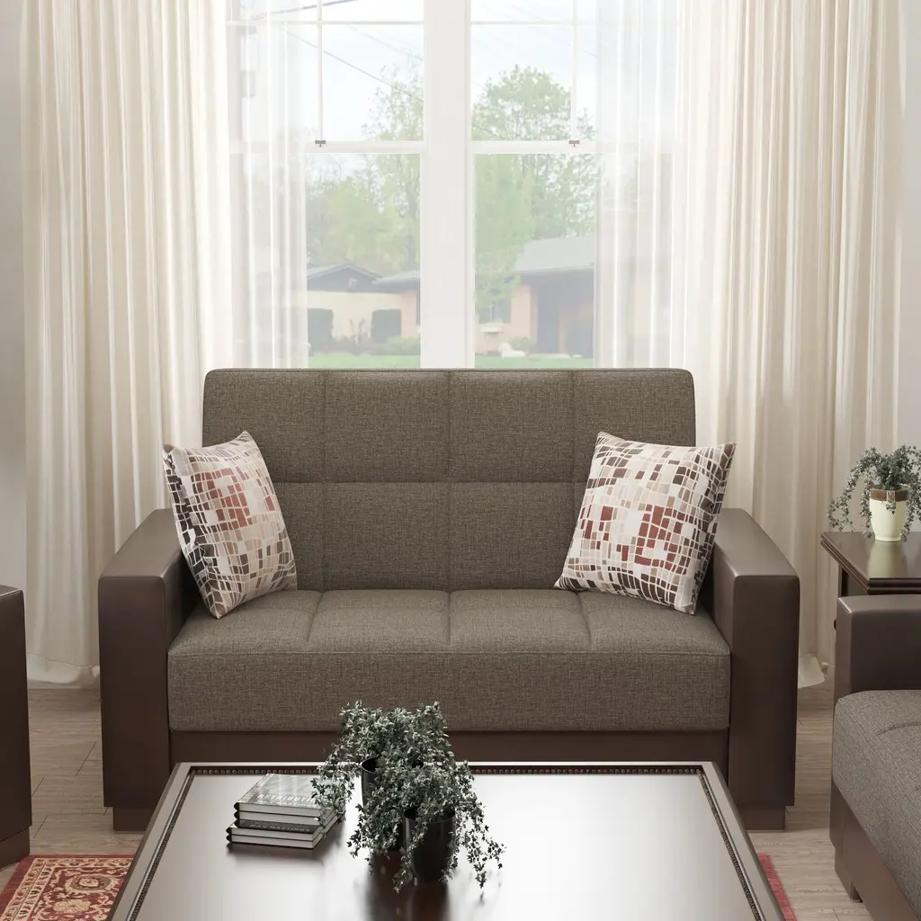 Collection Upholstered Convertible Loveseat With Storage - Brown-1