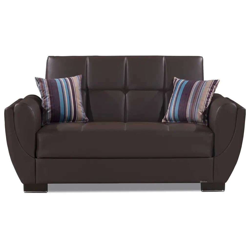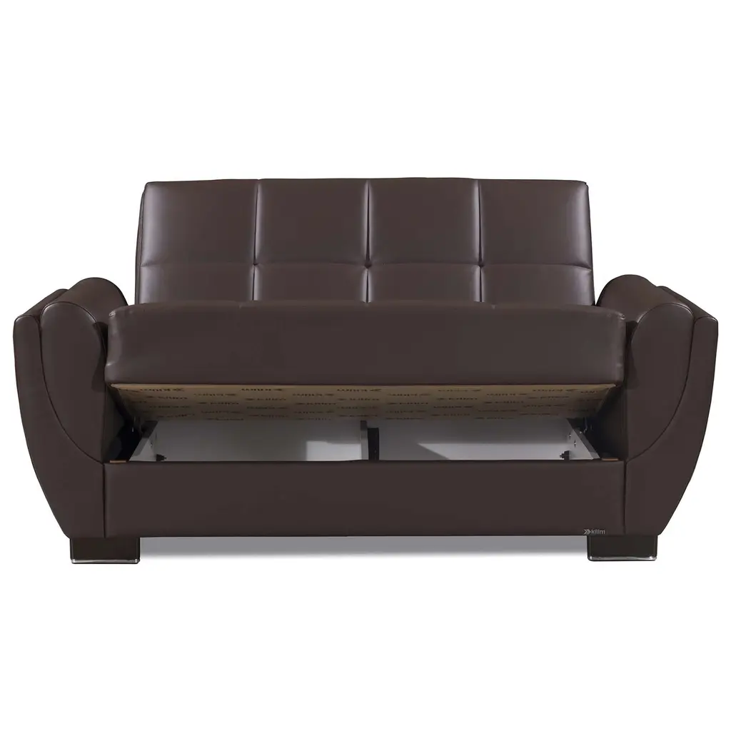 Collection Upholstered Convertible Loveseat With Storage - Brown Pu