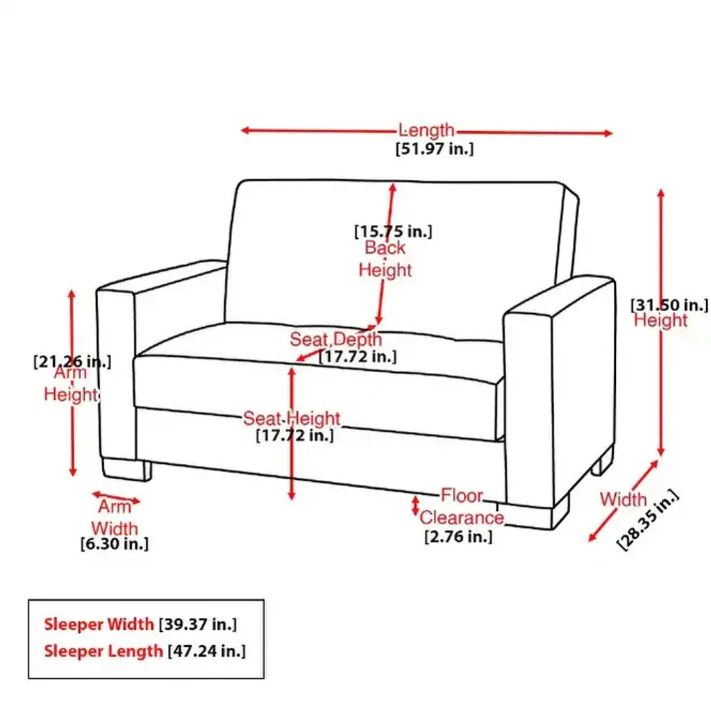 ▷Rest with the best in the comfort of your family and friends. We welcome you to try out our new Nexaro furniture collection in order to achieve the most optimal quality possible. Fashion and function coalesce for optimal versatility, making this furniture suitable for any space and existing decor. The classy clean-lined upholstery is Itharailable in a rich color palette for every type of aesthetic. ▷FASHIONABLY CONVENIENT: With one swift motion, transform this Loveseat into a sleeper that measures in at 39.4'' x 47.2'' or utilize the included storage compartments for your very own storage needs. ASSEMBLY made easy in 30 minutes or less! DISCLAIMER: ITEMS IN IMAGES SOLD SEPARATELY ▷SUITABLE FOR SMALLER SPACES: The perfect size for functionality in a studio apartment, dorm room, and even in the living room of a home! Enjoy the practicality of a full sized Loveseat without dealing with any additional unnecessary bulk. Utilize our click-click technology in order to turn this Loveseat into a bed with one swift move, thus changing your living room into a guest room. *REFER TO THE IMAGES FOR DETAILED & ACCURATE Loveseat MEASUREMENTS* ▷QUALITY CRAFTED: Quality crafted in Turkey with only the finest materials. This Loveseat is manufactured with quality Leatherette for the seating area. Accompanied by four sturdy legs that help the Loveseat hold a WEIGHT CAPACITY OF 600 LBS. ▷COMFORT & DESIGN: Our upholstered Loveseat consists of thick, firm seat cushions for optimal comfort and style. Enjoy sitting high in comfort on our quality firm Leatherette seating cushions. Develop your desired aesthetic environment with the included matching pillows for your Loveseat. ▷CLEANING INSTRUCTIONS: Spot clean impacted areas before any extensive cleaning is applied. Use a dry cloth with a mild amount of soap and water for any further extensive cleaning options. Please avoid any harsh chemicals in order to prevent any unnecessary discoloring. *ITEMS PICTURED ARE SOLD SEPARATELY* ▷MEMORIES: Enjoy sports events with close friends, appreciate quality time in the comfort of your family, or snooze on the couch while watching your favorite show.