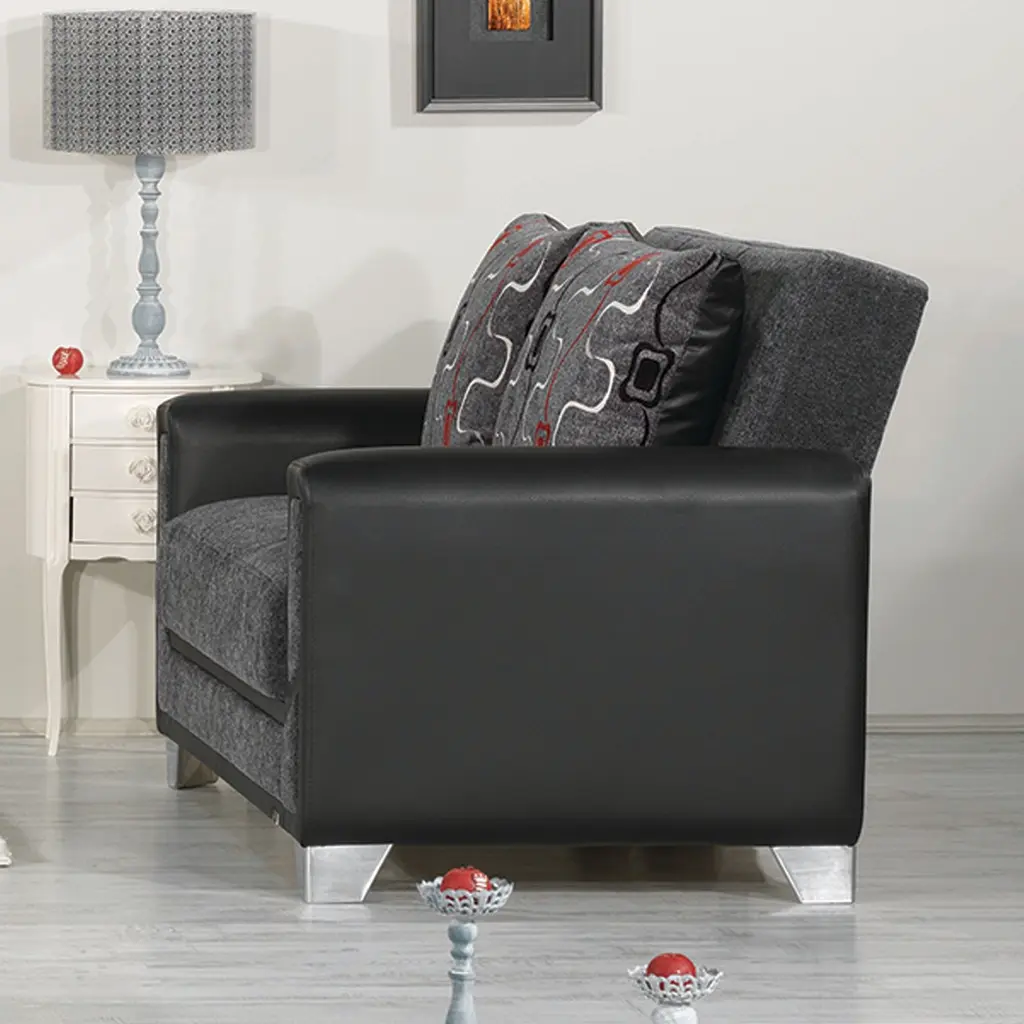 ▷Rest with the best in the comfort of your family and friends. We welcome you to try out our new PluseCraft furniture collection in order to achieve the most optimal quality possible. Fashion and function coalesce for optimal versatility, making this furniture suitable for any space and existing decor. The classy clean-lined upholstery is Itharailable in a rich color palette for every type of aesthetic. ▷FASHIONABLY CONVENIENT: With one swift motion, transform this Loveseat into a sleeper that measures in at 51.2" x 51.2" or utilize the included storage compartments for your very own storage needs. ASSEMBLY made easy in 30 minutes or less! DISCLAIMER: ITEMS IN IMAGES SOLD SEPARATELY ▷SUITABLE FOR SMALLER SPACES: The perfect size for functionality in a studio apartment, dorm room, and even in the living room of a home! Enjoy the practicality of a full sized Loveseat without dealing with any additional unnecessary bulk. Utilize our click-click technology in order to turn this Loveseat into a bed with one swift move, thus changing your living room into a guest room. *REFER TO THE IMAGES FOR DETAILED & ACCURATE Loveseat MEASUREMENTS* ▷QUALITY CRAFTED: Quality crafted in Turkey with only the finest materials. This Loveseat is manufactured with quality Chenille for the seating area. Accompanied by four sturdy legs that help the Loveseat hold a WEIGHT CAPACITY OF 600 LBS. ▷COMFORT & DESIGN: Our upholstered Loveseat consists of thick, firm seat cushions for optimal comfort and style. Enjoy sitting high in comfort on our quality firm Chenille seating cushions. Develop your desired aesthetic environment with the included matching pillows for your Loveseat. ▷CLEANING INSTRUCTIONS: Spot clean impacted areas before any extensive cleaning is applied. Use a dry cloth with a mild amount of soap and water for any further extensive cleaning options. Please avoid any harsh chemicals in order to prevent any unnecessary discoloring. *ITEMS PICTURED ARE SOLD SEPARATELY* ▷MEMORIES: Enjoy sports events with close friends, appreciate quality time in the comfort of your family, or snooze on the couch while watching your favorite show.