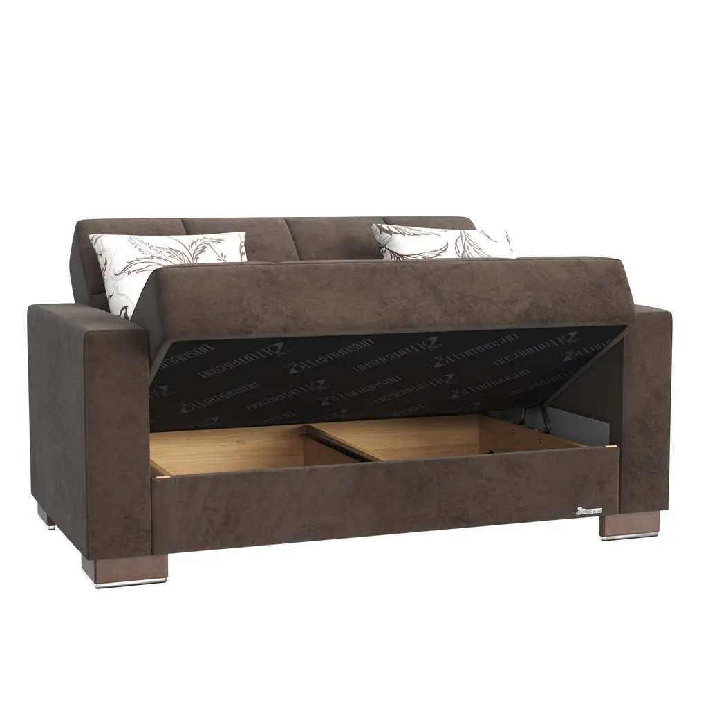 ▷Rest with the best in the comfort of your family and friends. We welcome you to try out our new Marabella furniture collection in order to achieve the most optimal quality possible. Fashion and function coalesce for optimal versatility, making this furniture suitable for any space and existing decor. The classy clean-lined upholstery is Itharailable in a rich color palette for every type of aesthetic. ▷FASHIONABLY CONVENIENT: With one swift motion, transform this Loveseat into a sleeper that measures in at 47.2' x 47.2'' or utilize the included storage compartments for your very own storage needs. ASSEMBLY made easy in 30 minutes or less! DISCLAIMER: ITEMS IN IMAGES SOLD SEPARATELY ▷SUITABLE FOR SMALLER SPACES: The perfect size for functionality in a studio apartment, dorm room, and even in the living room of a home! Enjoy the practicality of a full sized Loveseat without dealing with any additional unnecessary bulk. Utilize our click-click technology in order to turn this Loveseat into a bed with one swift move, thus changing your living room into a guest room. *REFER TO THE IMAGES FOR DETAILED & ACCURATE Loveseat MEASUREMENTS* ▷QUALITY CRAFTED: Quality crafted in Turkey with only the finest materials. This Loveseat is manufactured with quality Microfiber for the seating area. Accompanied by four sturdy legs that help the Loveseat hold a WEIGHT CAPACITY OF 600 LBS. ▷COMFORT & DESIGN: Our upholstered Loveseat consists of thick, firm seat cushions for optimal comfort and style. Develop your desired aesthetic environment with the included matching pillows for your Loveseat. ▷CLEANING INSTRUCTIONS: Spot clean impacted areas before any extensive cleaning is applied. Use a dry cloth with a mild amount of soap and water for any further extensive cleaning options. Please avoid any harsh chemicals in order to prevent any unnecessary discoloring. ▷MEMORIES: Enjoy sports events with close friends, appreciate quality time in the comfort of your family, or snooze on the couch while watching your favorite show.