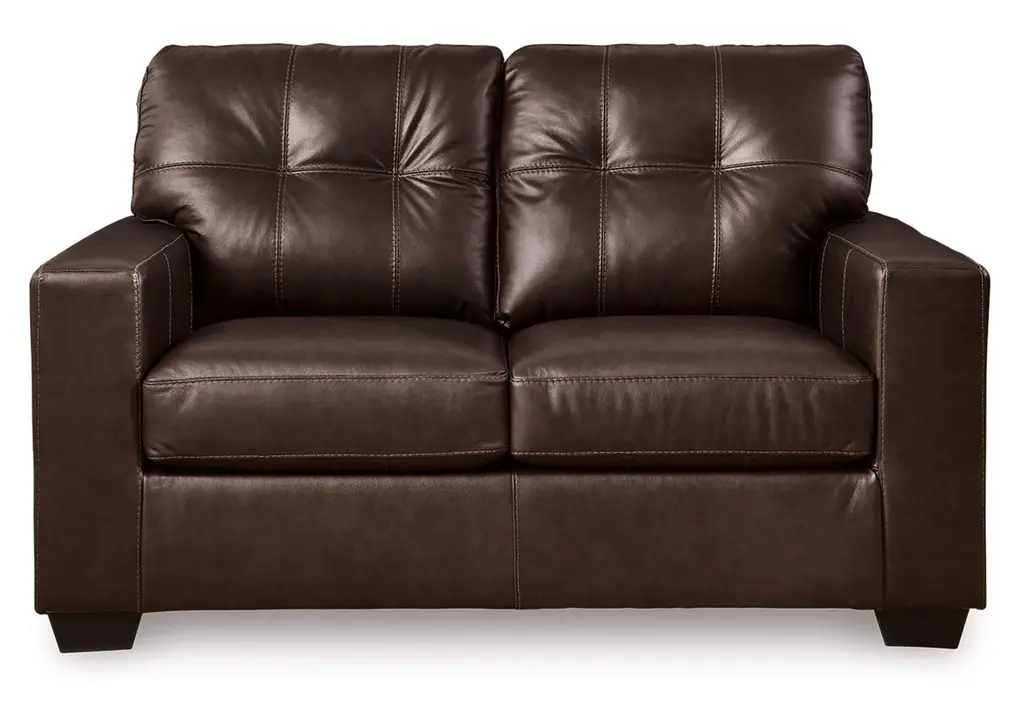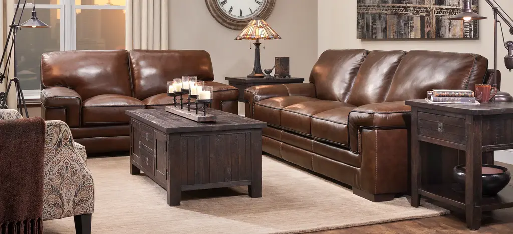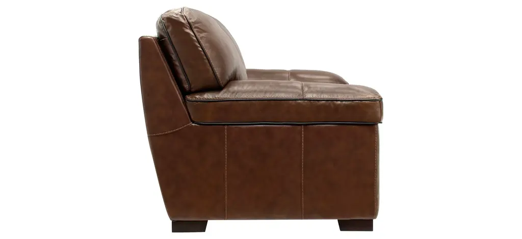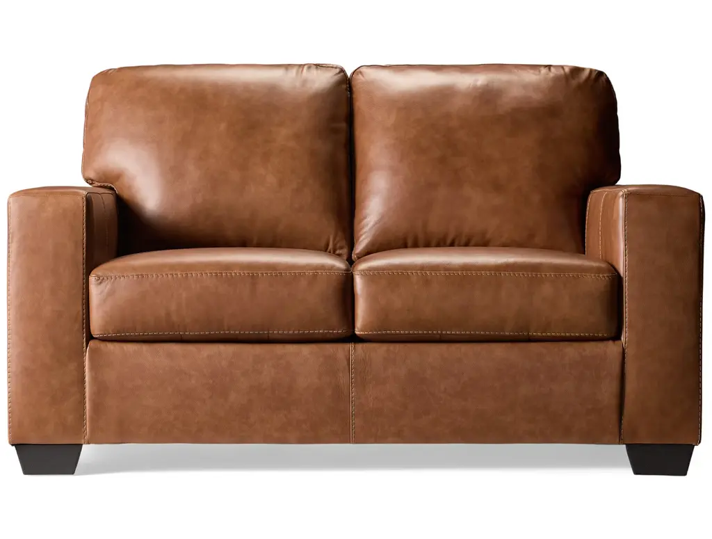The Colton leather loveseat is gorgeous, handsome and inviting. If this set's top grain leather upholstery in beautiful, warm Amarillo Bramble doesn't grab you, its clean, simple design will. The cool and contemporary vibe gives your living room an updated and slightly urban look, while the luxurious feel of genuine leather adds an indulgent touch. The natural beauty of this group is sure to make an impression during any gathering.