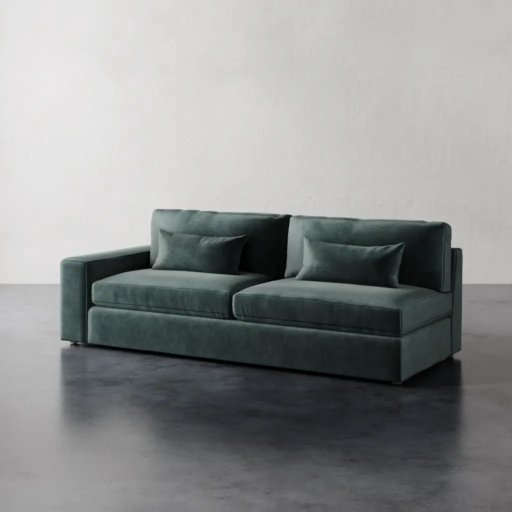 The Contemporary 2-Seater Sofa by Lema Snap is a modular upholstered system offering the chance to create highly personalized solutions with an informal look. With a wide range of modules available -in two depths-, users can create a great variety of linear and corner sofa arrangements, together with chaise longues, poufs, seat pads, ends and center pieces, and even asymmetrical. Snap's key features are its simple lines, austere shaping, and geometric joints, not to mention its highly elegant feel and contemporary proportions. Together, this makes Snap the perfect place for a spot of comfort, thanks also the cushion-inspired design of the backrest, with its extra down padding. The structure can be lifted slightly off the floor or rested on two chrome-plated or burnished metal “L"-shaped feet that match the armrests for length. The shiny flash of metal is a sophisticated detail that elevates the overall design thanks to the contrast with the shadow created between the base and the floor.