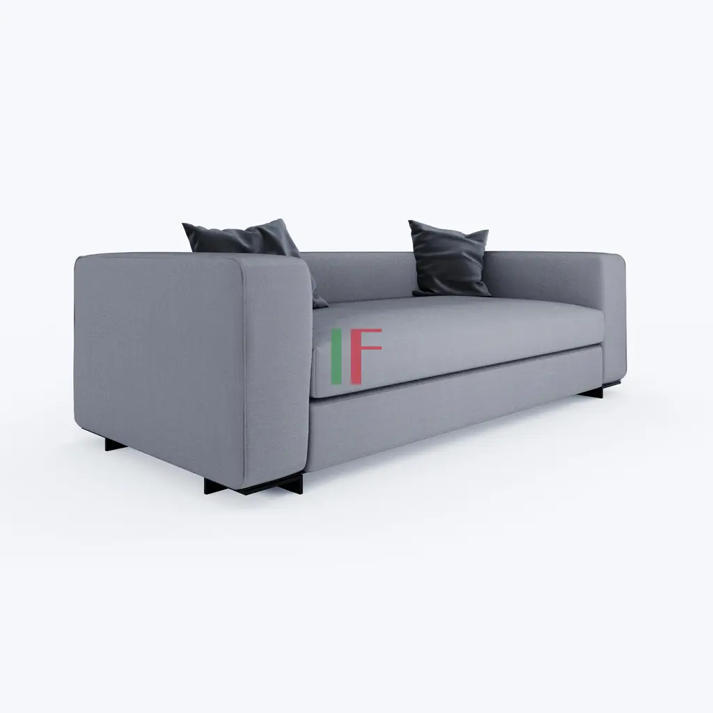 The Contemporary 2-Seater Sofa by Lema Snap is a modular upholstered system offering the chance to create highly personalized solutions with an informal look. With a wide range of modules available -in two depths-, users can create a great variety of linear and corner sofa arrangements, together with chaise longues, poufs, seat pads, ends and center pieces, and even asymmetrical. Snap's key features are its simple lines, austere shaping, and geometric joints, not to mention its highly elegant feel and contemporary proportions. Together, this makes Snap the perfect place for a spot of comfort, thanks also the cushion-inspired design of the backrest, with its extra down padding. The structure can be lifted slightly off the floor or rested on two chrome-plated or burnished metal “L"-shaped feet that match the armrests for length. The shiny flash of metal is a sophisticated detail that elevates the overall design thanks to the contrast with the shadow created between the base and the floor.