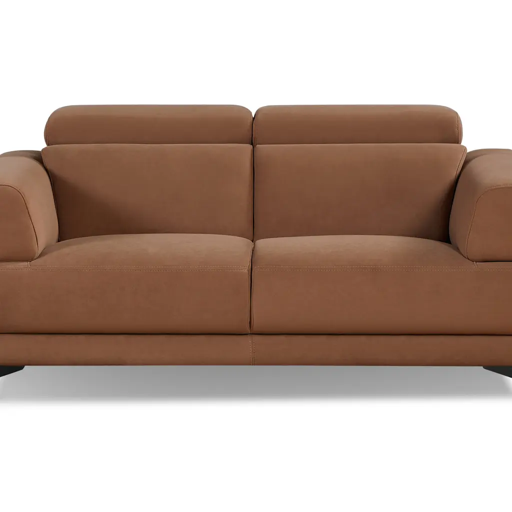 Contemporary Brown Living Room Loveseat With Adjustable Headrest - Brown
