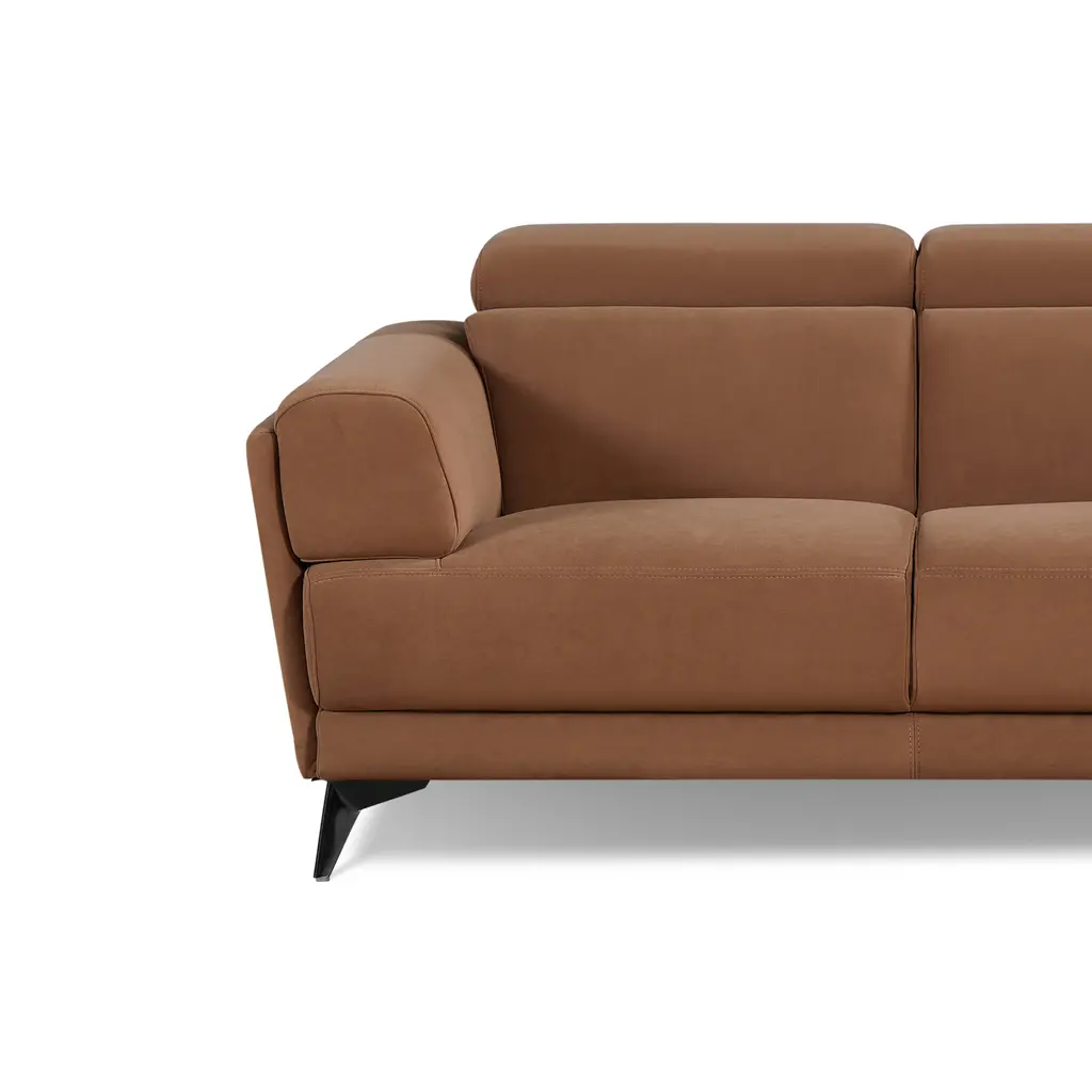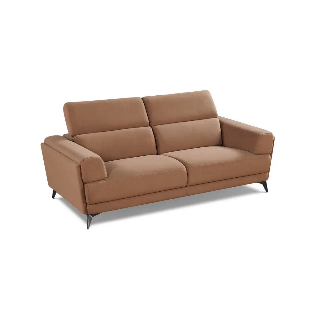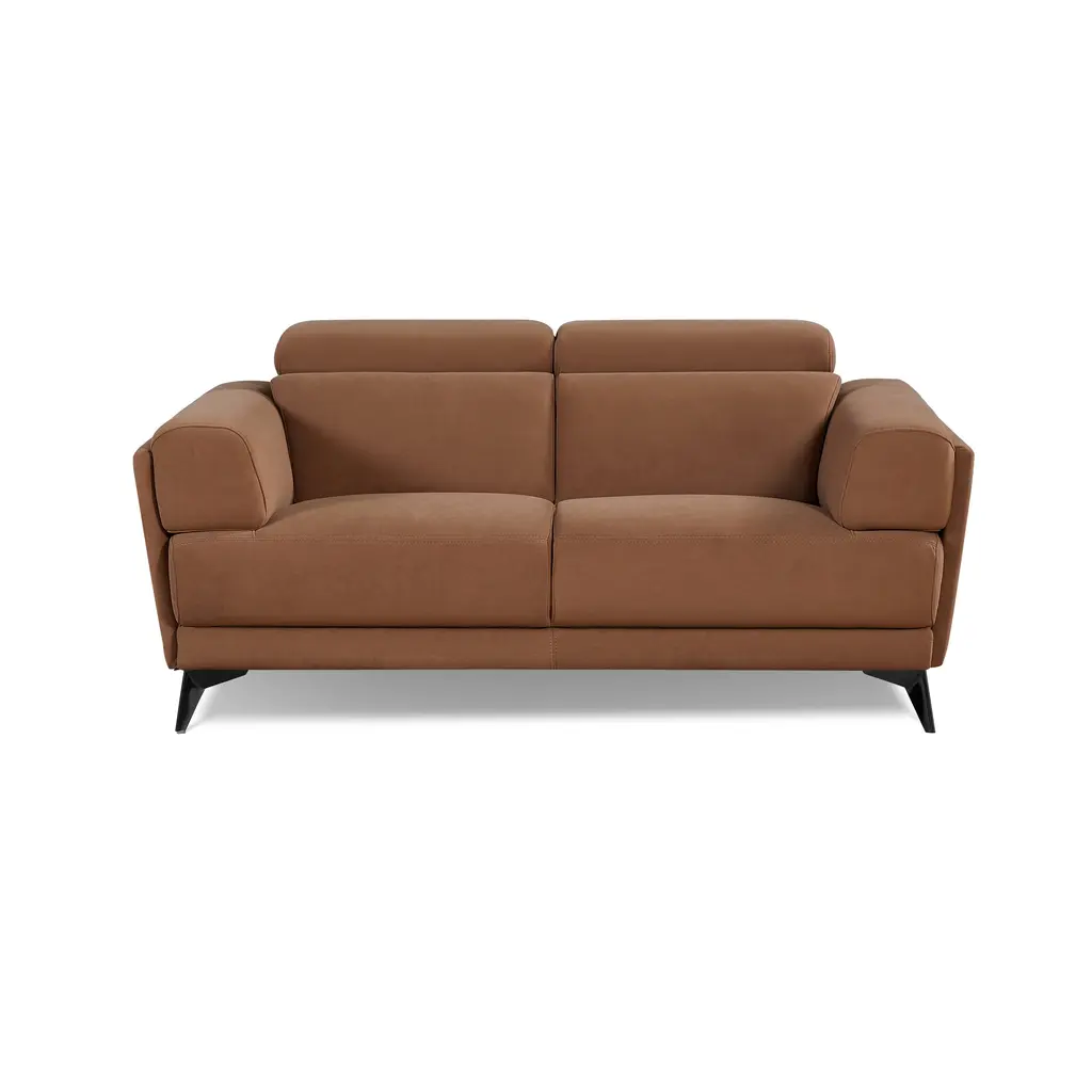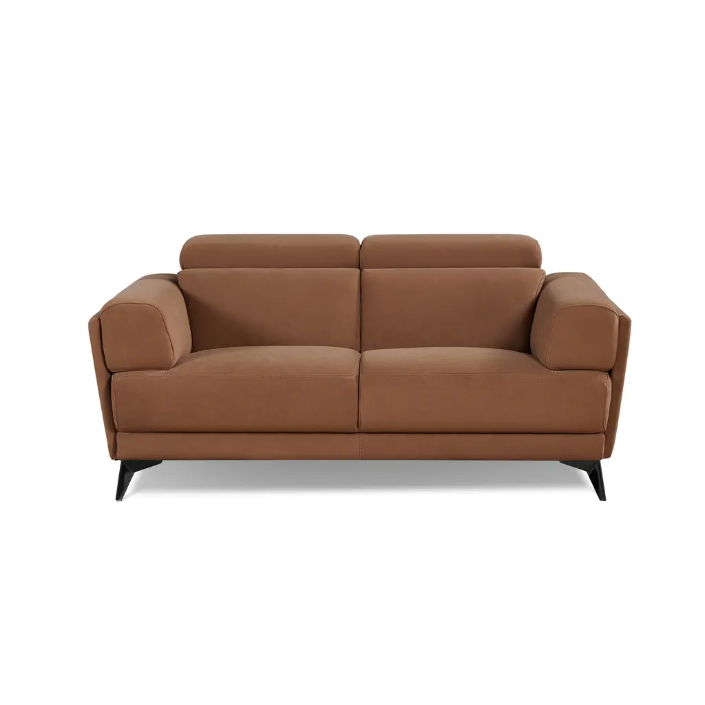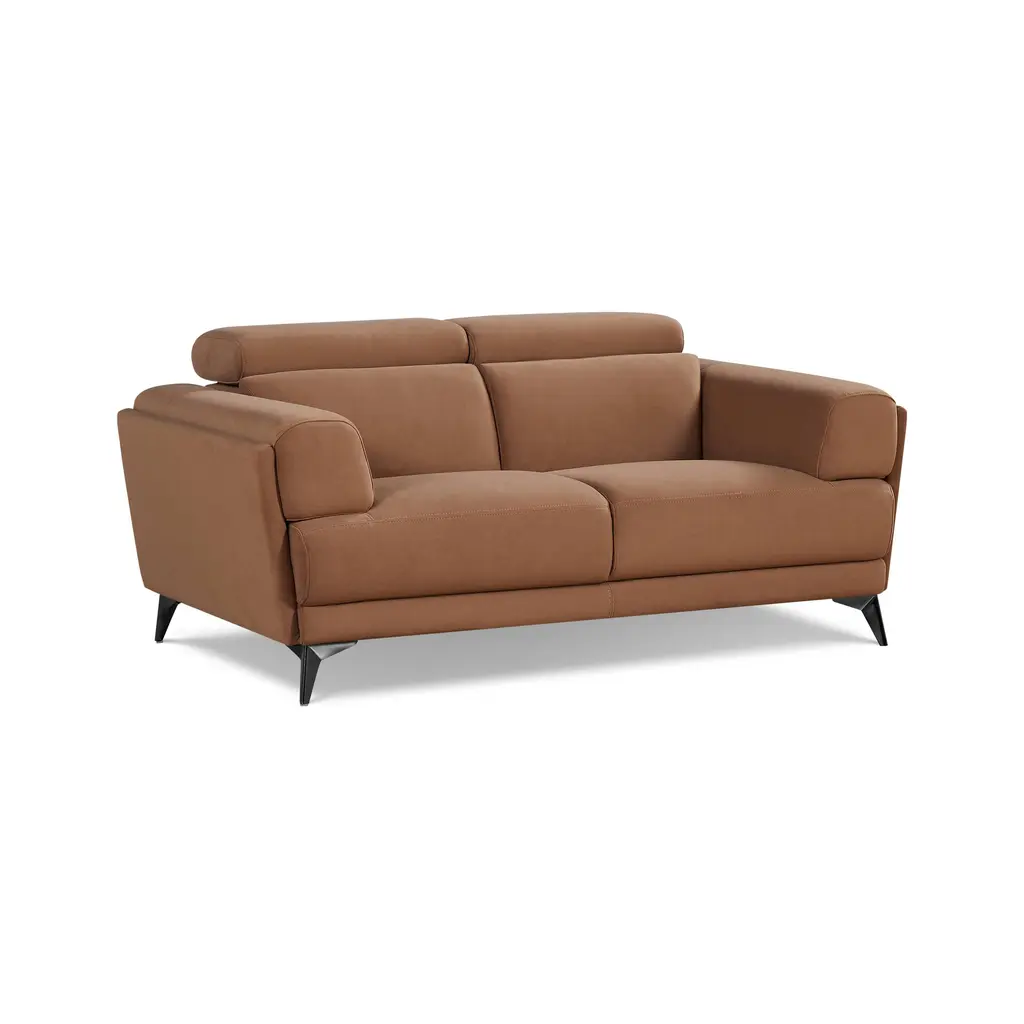 Elevate your living space with this sophisticated loveseat, upholstered in a warm brown fabric that exudes modern elegance. Featuring clean lines and sleek black metal legs, this loveseat adds a contemporary touch to any room. Constructed with a sturdy wooden frame and reinforced with high-quality materials, this loveseat is built for long-lasting durability. Plush cushions filled with high-density foam provide exceptional comfort and support, making it perfect for relaxation.Equipped with adjustable headrests, the loveseat allows you to customize your seating position for optimal comfort and support. The loveseat, warm brown upholstery enhances the cozy feel, while the black metal legs add a modern flair. Transform your home with this stylish and comfortable loveseat, designed to seamlessly blend with any contemporary decor.