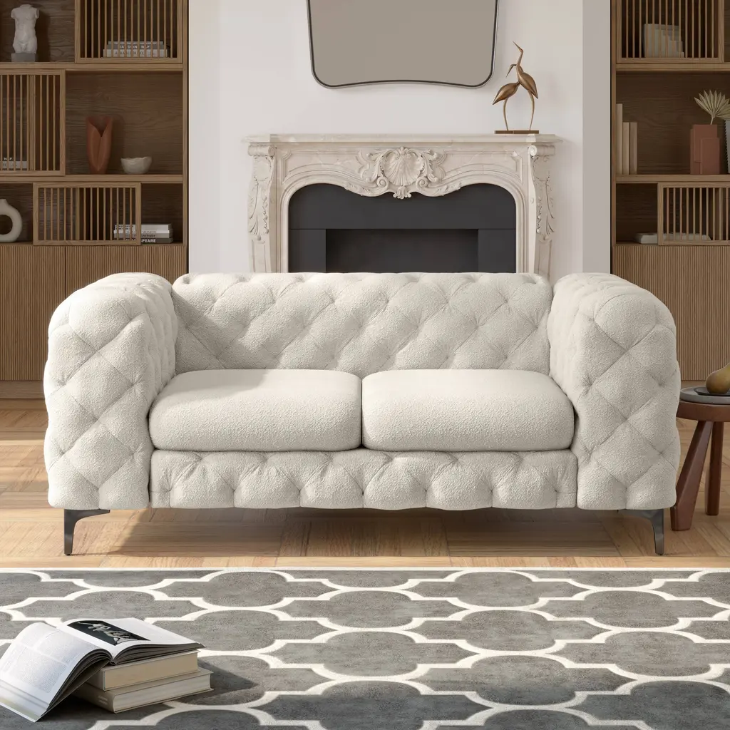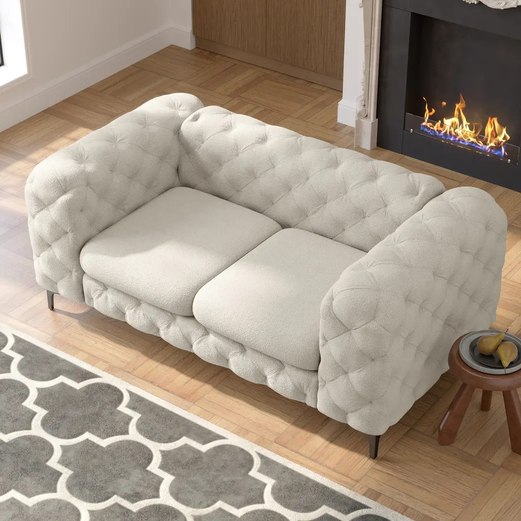 Corvus Chesterfield Aosta Tufted Velvet Loveseat - White
