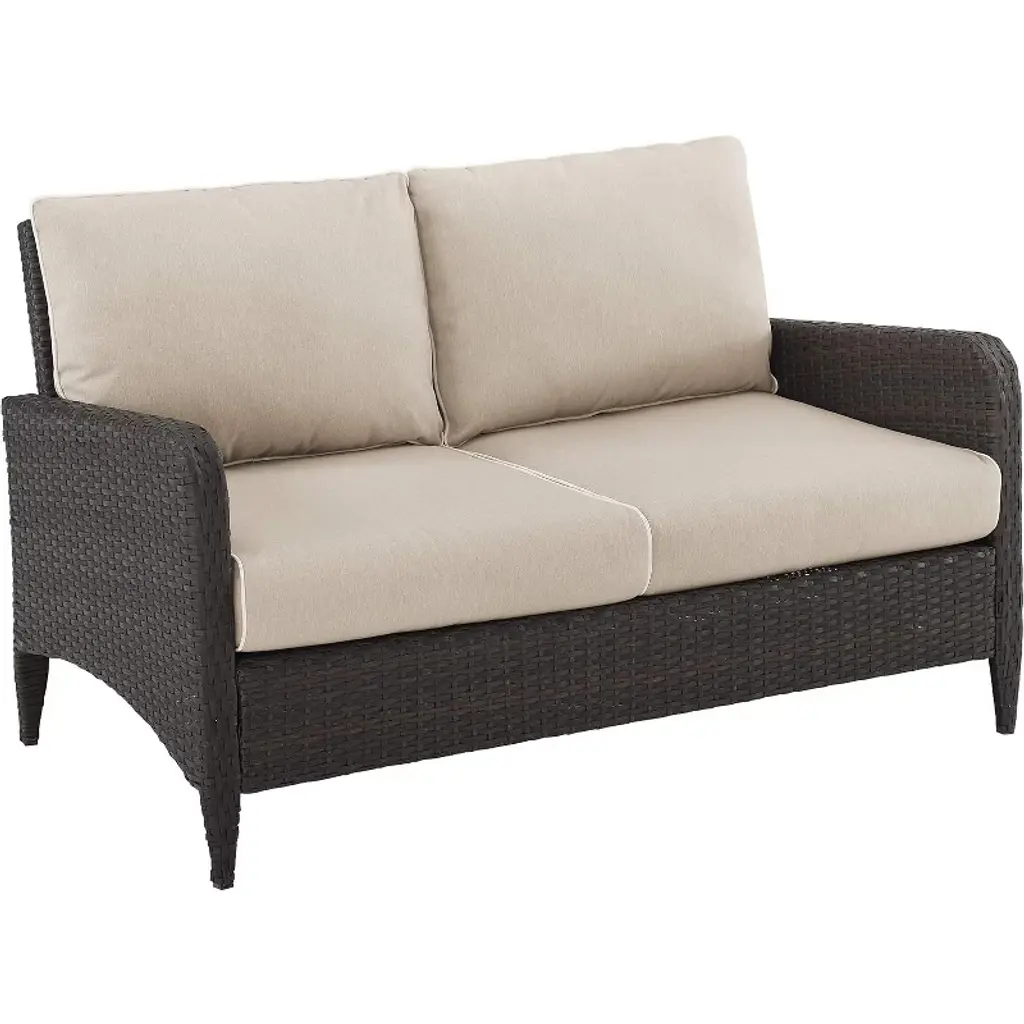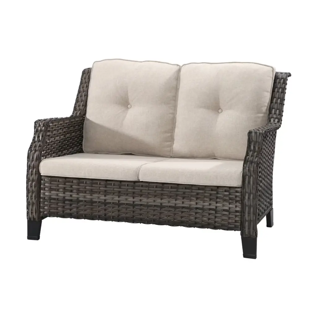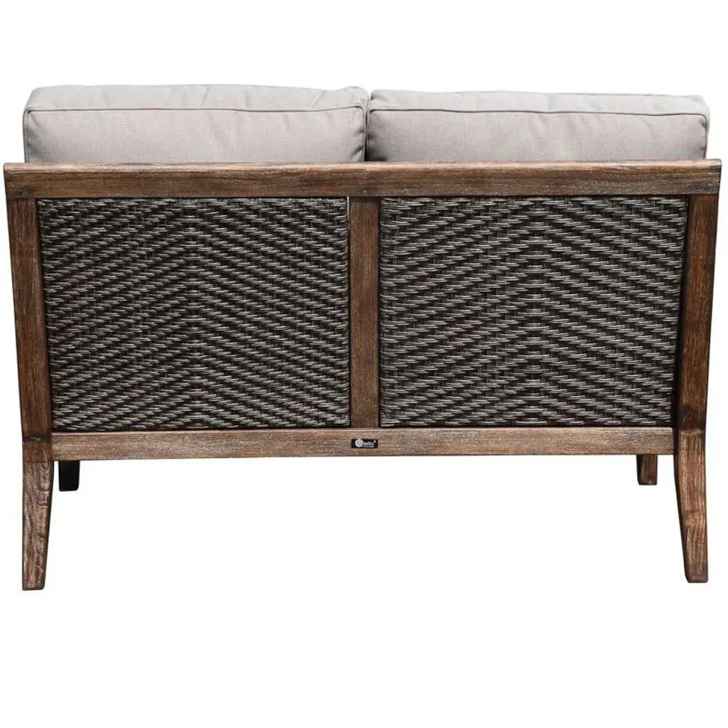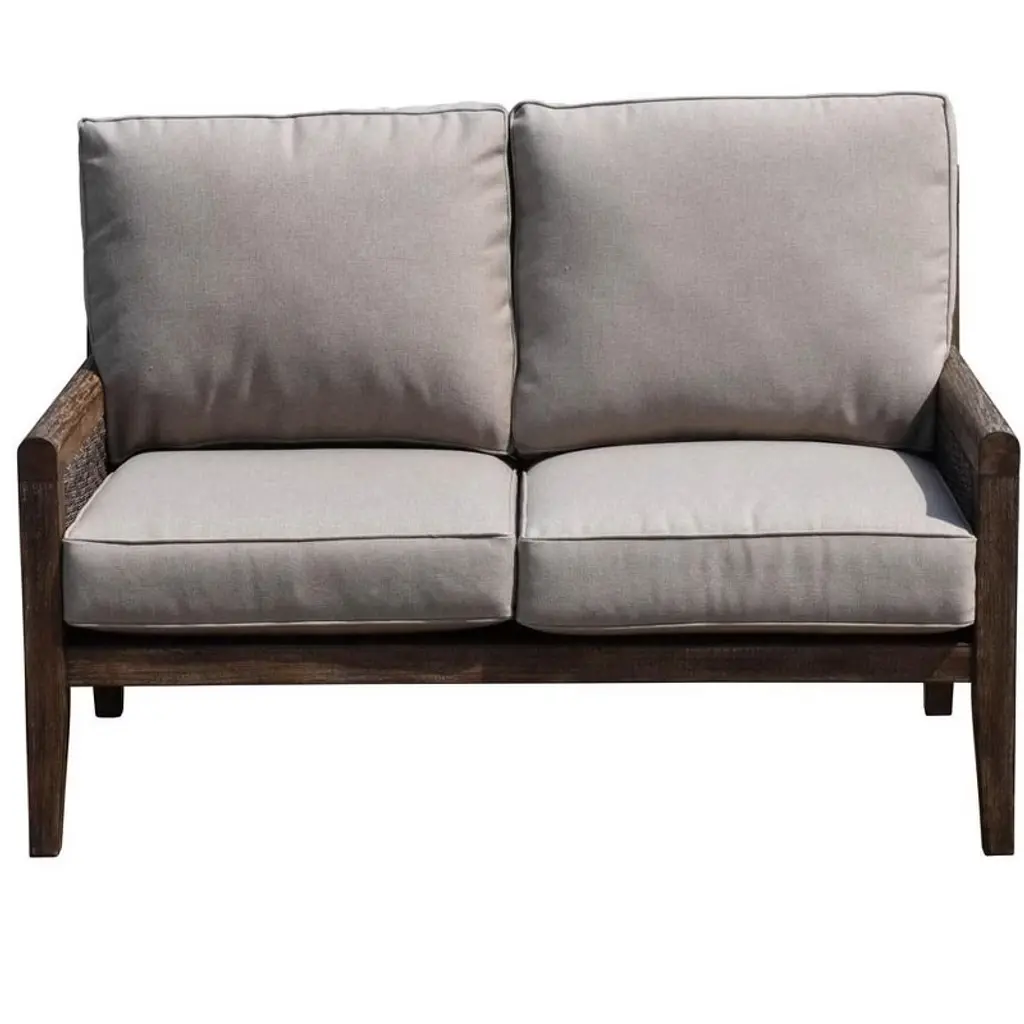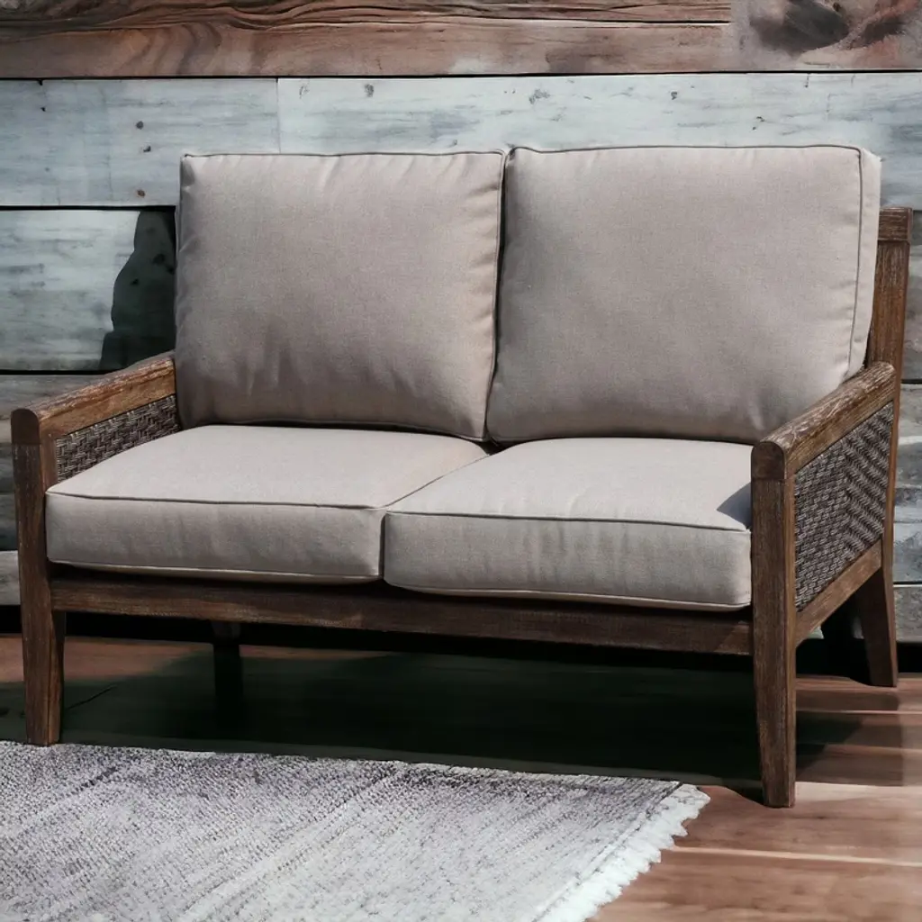 Courtyard Casual Bermuda Fsc Teak Loveseat Fsc Fsc Teak Rustic Taupe Stain With Weathered Gray Wicker Fully Assembled