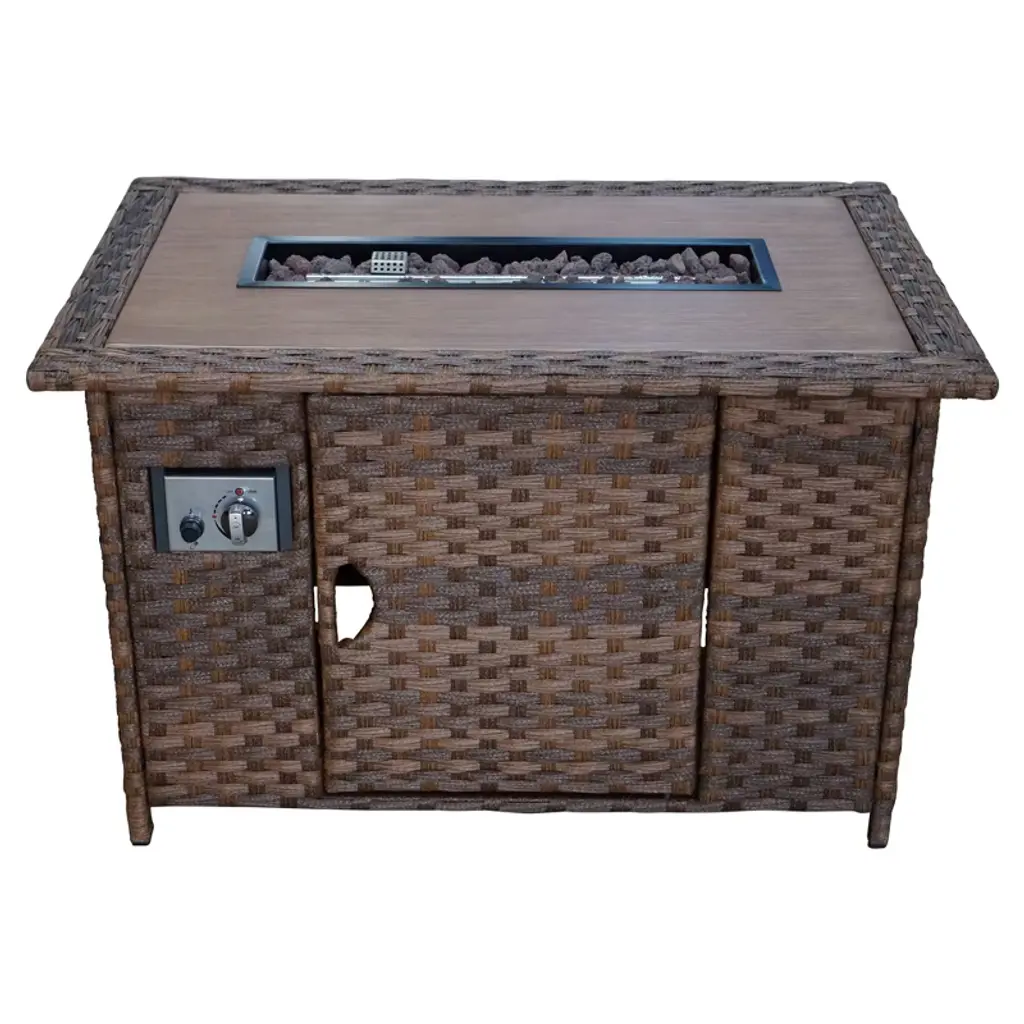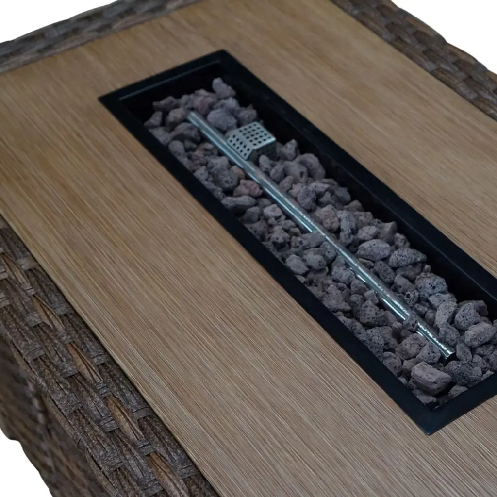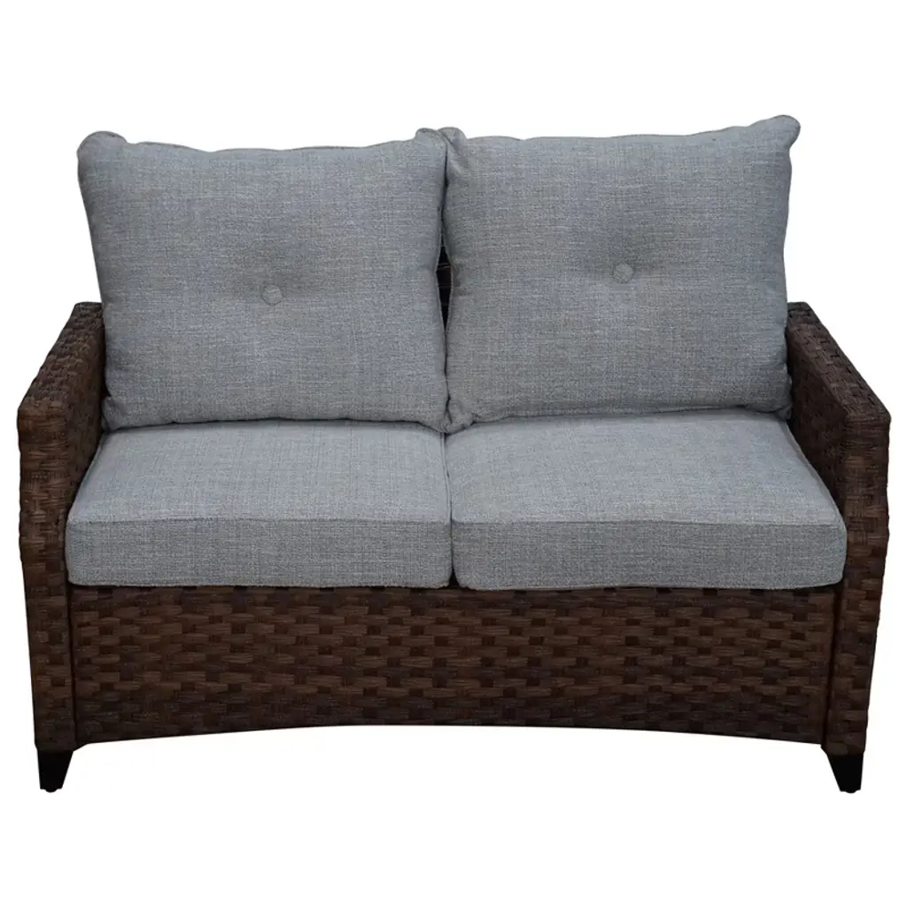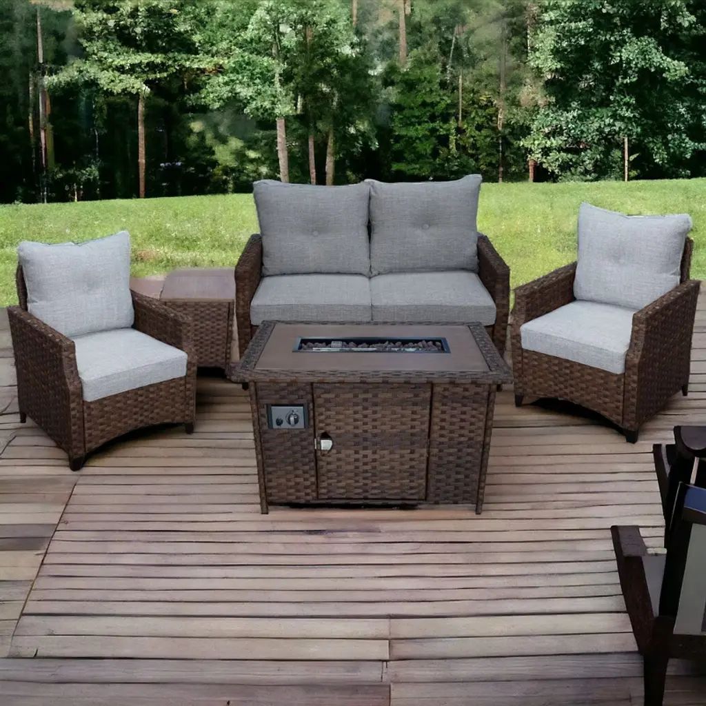 Courtyard Casual Costa Mesa 5 Pc Loveseat Set - Brown One Sofa, Two Club Chairs, One End Table, & One Fire Pit Frame With Solution Dyed Poly Fabric