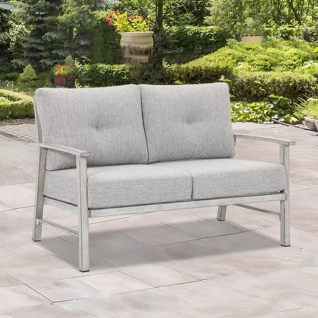 Cowlown Outdoor Patio Loveseat Sofa, Aluminum Frame 2-seat Couch With Soft Cushions, All-weather Furniture For Garden, Poolside, Lawn