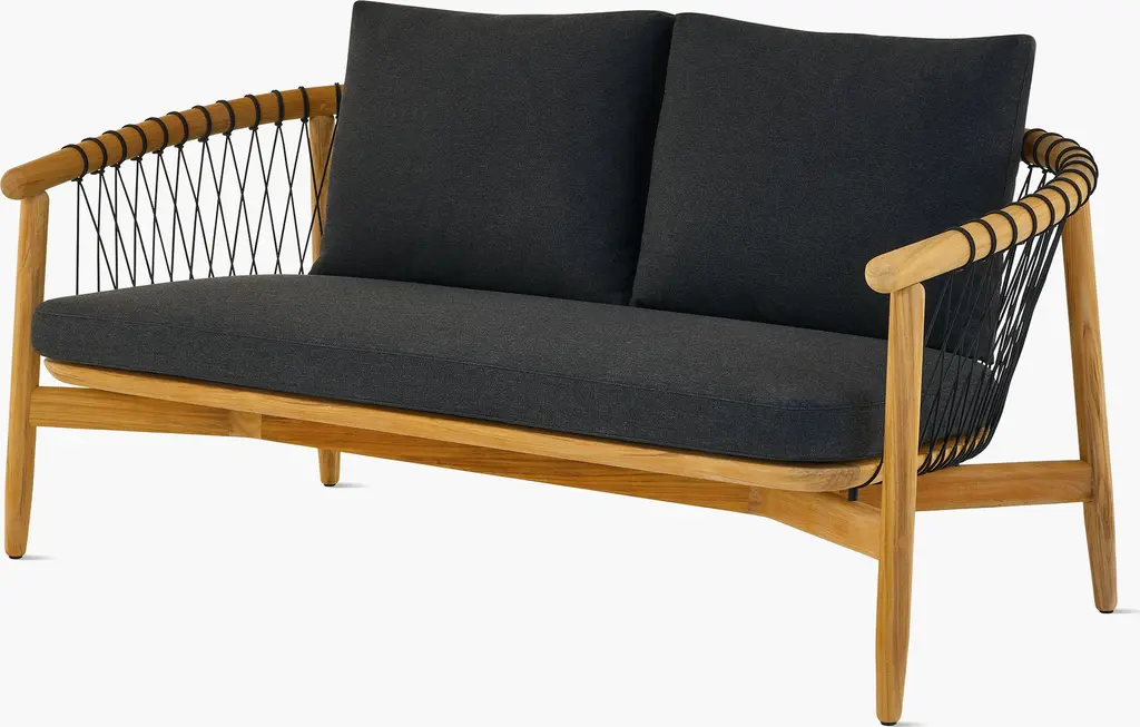 The popular Crosshatch Collection (2014) is now available in teak for outdoor relaxation and enjoyment. Designed by the Austrian firm Eoos, Crosshatch began with a desire to use an industrial material in a handcrafted way, resulting in a lattice that's both structural and decorative. After a year of testing ropes, they found the ideal choice to be parachute cord, which stays taut and won't stretch over time. This outdoor collection features gracefully curved, solid teak frames and weather-resistant cushions in Sunbrella Heritage fabric, which has an elegant linen-like hand.