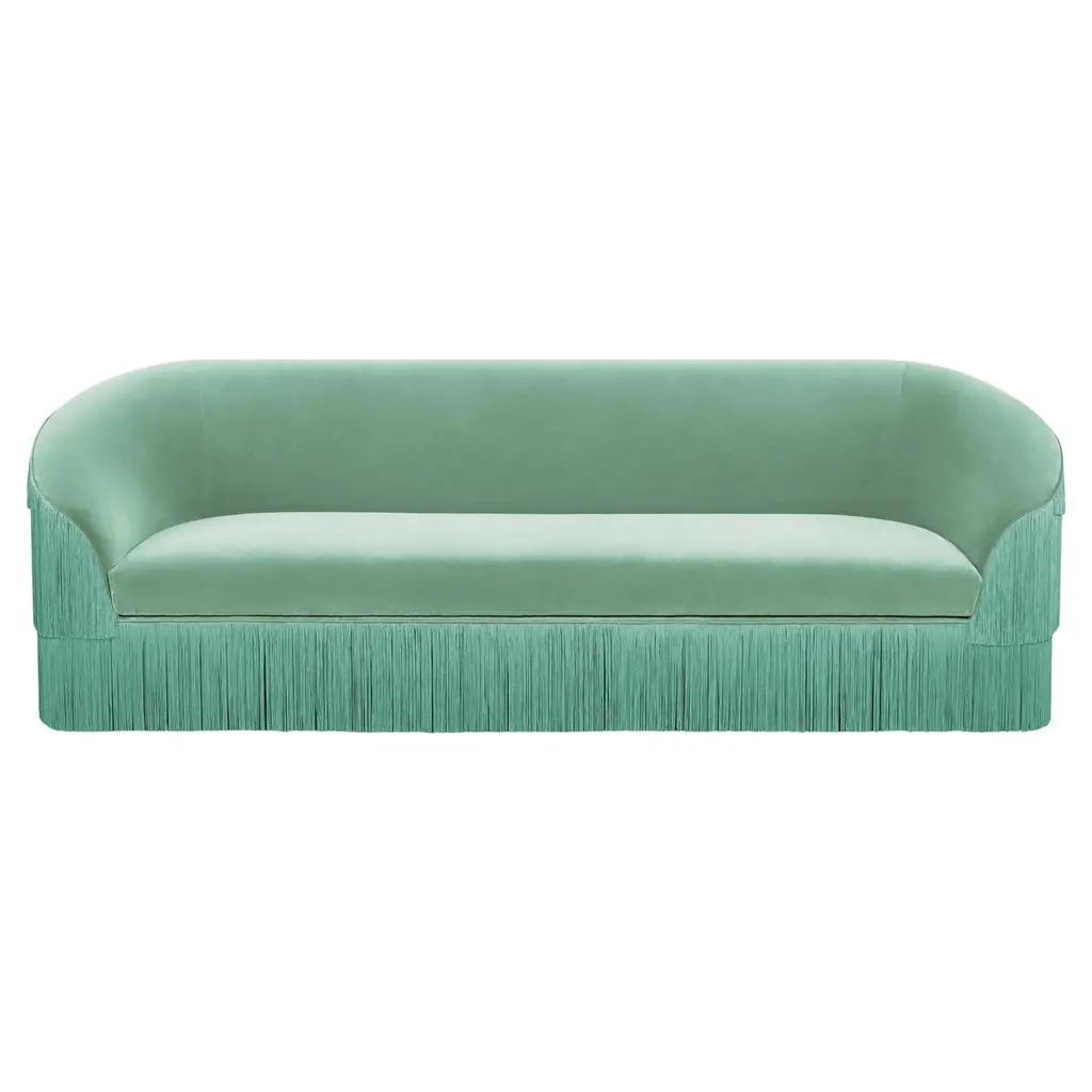 Customizable Fringes Loveseat By Munna In Sage Green Cotton Velvet