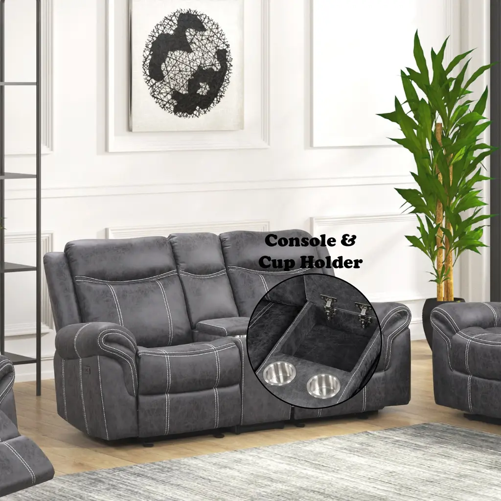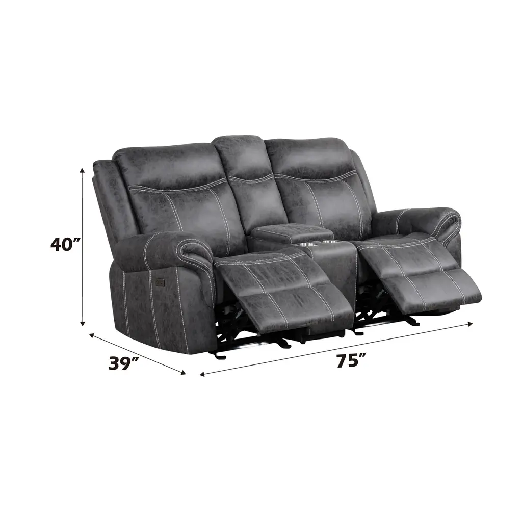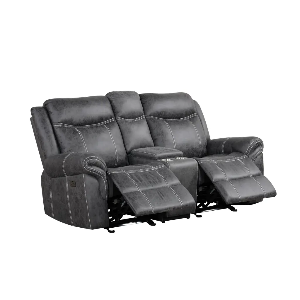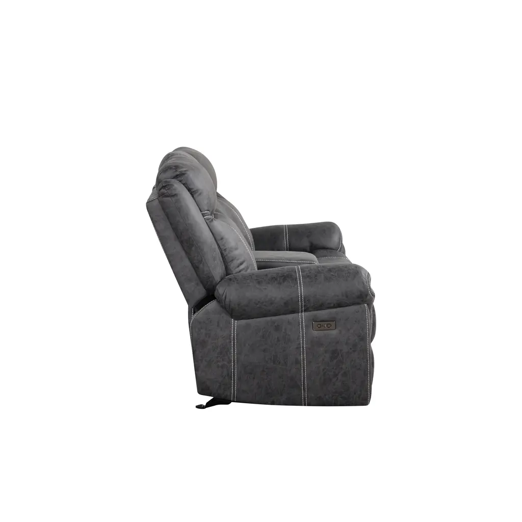 Dark Gray Polish Microfiber Power Motion Loveseat W/usb - Grey