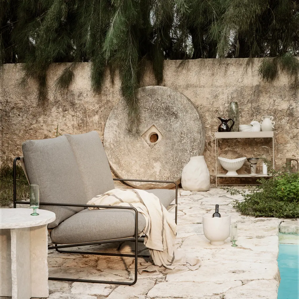 Summer is the perfect time for unwinding amidst tranquil natural surroundings. Transform your outdoor space into a comfortable retreat with the Desert Sofa – a spacious seating arrangement that offers ample space for sunbathing, reading or socializing with loved ones. Engineered to withstand the unpredictable weather conditions, this sofa is exclusively crafted for outdoor use. Moreover, the comfortable sofa cushions are equipped with water- and UV-resistant materials that offer protection against stains, ensuring durability and comfort all season long.